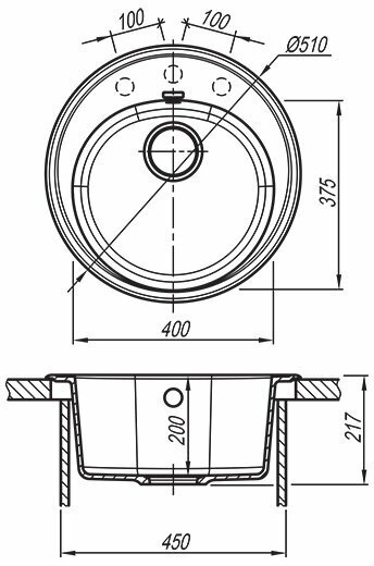 Мойка для кухни врезная каменная Florentina ЛОТОС-510, цвет антрацит, круглая, 510х510х217 мм