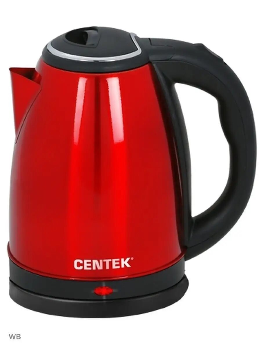 Купить Чайник Centek-1068 (красный) 2.0л, 2000Вт, хромированная вставка на крышке