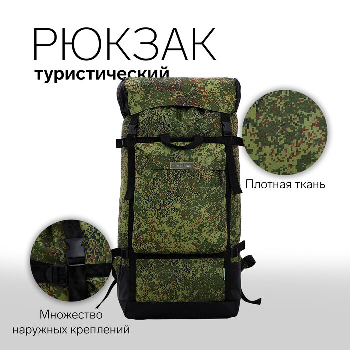 Рюкзак турист Боровик, 40 л, 31,5*26*68, отд на стяжке шнурком, 3 н/кармана, пиксель 4859967