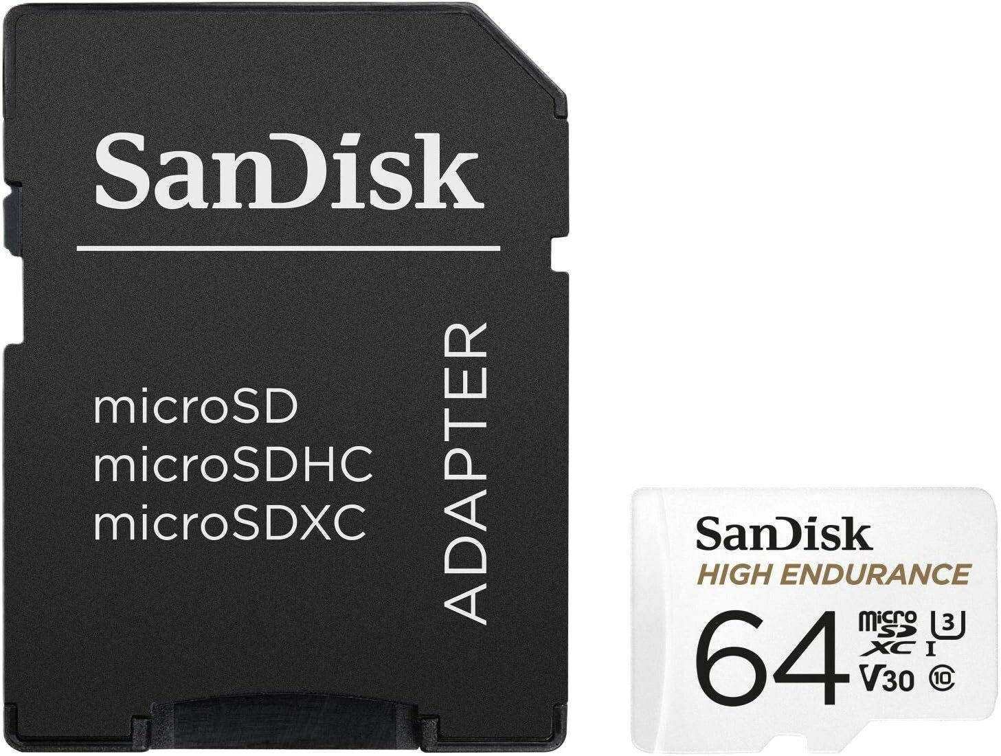 Карта памяти microSDXC SanDisk High Endurance - 64 Гб - высокой прочности для камер 4К UHD - 5К часов + адаптер