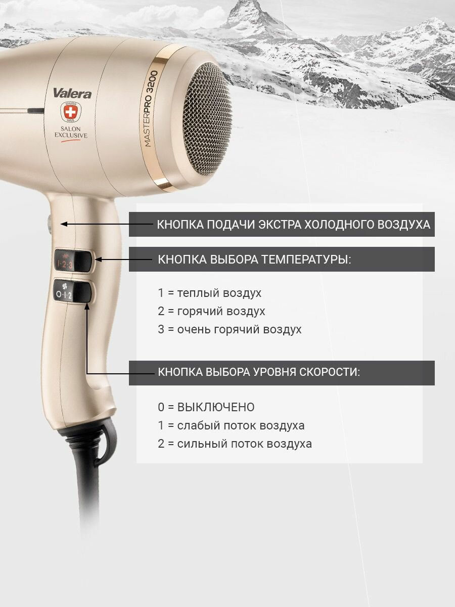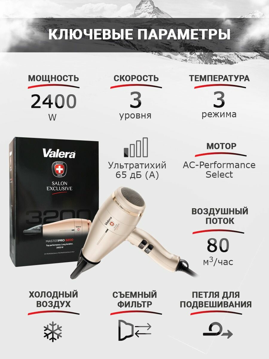 Valera Master Pro 3200 Soft Black - Валера Мастер Про 3200 Профессиональный фен для укладки волос, 2400 Вт -