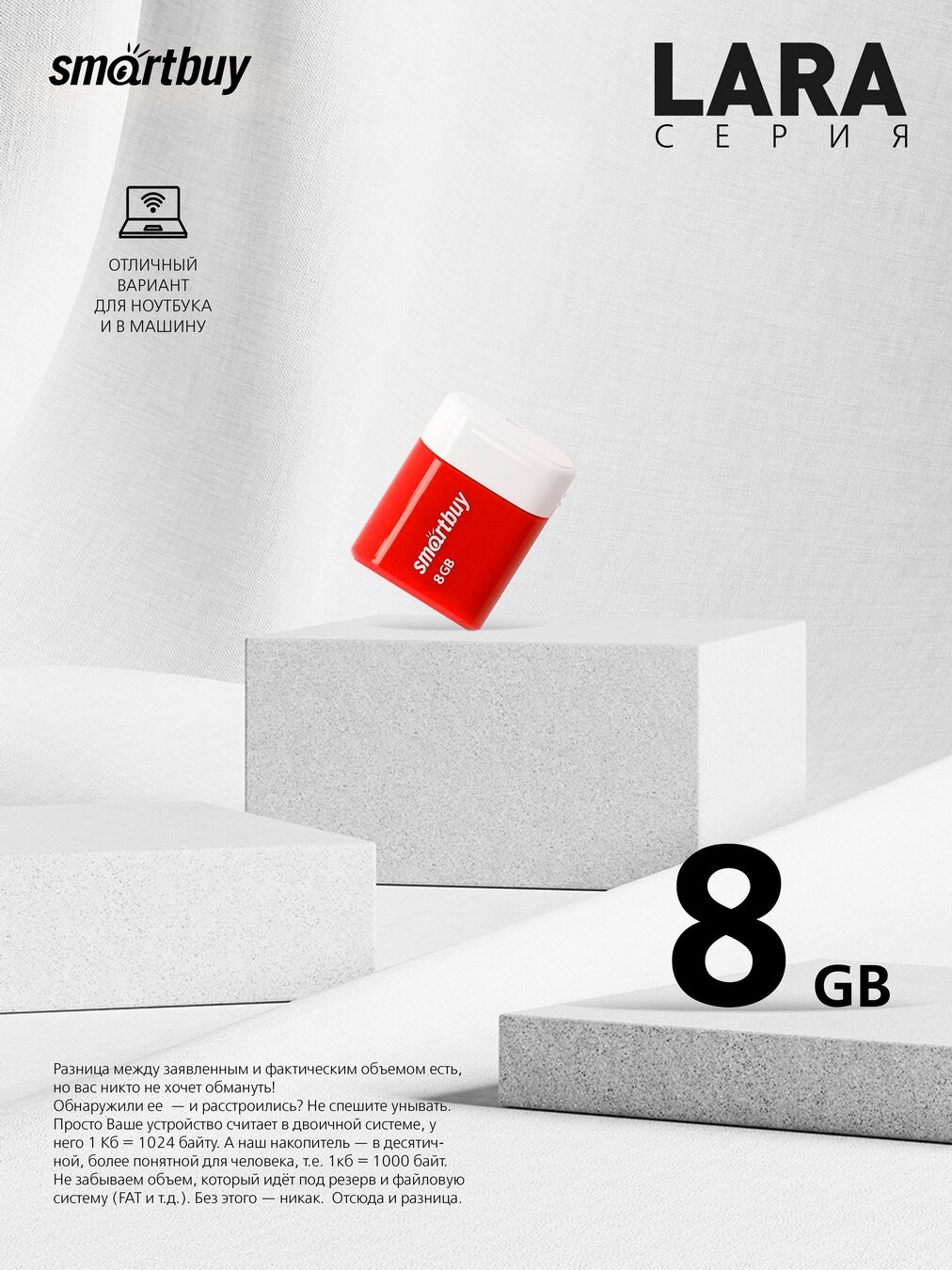 Smartbuy Флешка Smartbuy Lara, 8 Гб, USB2.0, чт до 25 Мб/с, зап до 15 Мб/с, красная