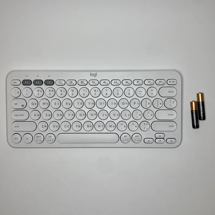 | Отзыв: | Отличная клавиатура, от мирового бренда, пользуюсь второй год, без нареканий, работает от двух пальчиковых батареек, на которых проработает в течении двух лет, по заявлению производителя, батарейки идут в комплекте. Выпускается в двух цветах, черном и белом. Очень удобно, что можно переключаться с одного девайса на другой, которые закрепил за ней. Клавиши переключения выделены жёлтым цветом. С торца имеется кнопка вкл/выкл. удобно, если хочешь протереть клаву. |