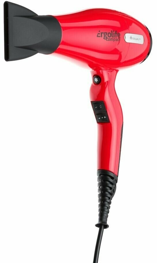 Фен DEWAL PRO ERGOLIFE COMPACT c ионизацией, красный, вес 550 гр, 2000 Вт, 2 насадки, провод 3 м 03-002 Red