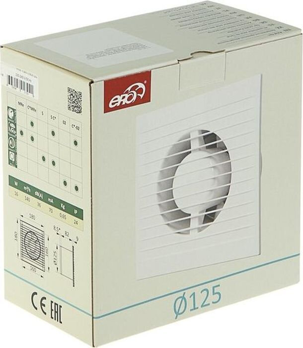 Вентилятор вытяжной ERA E 125 -02 (88-251), белый, 16 Вт