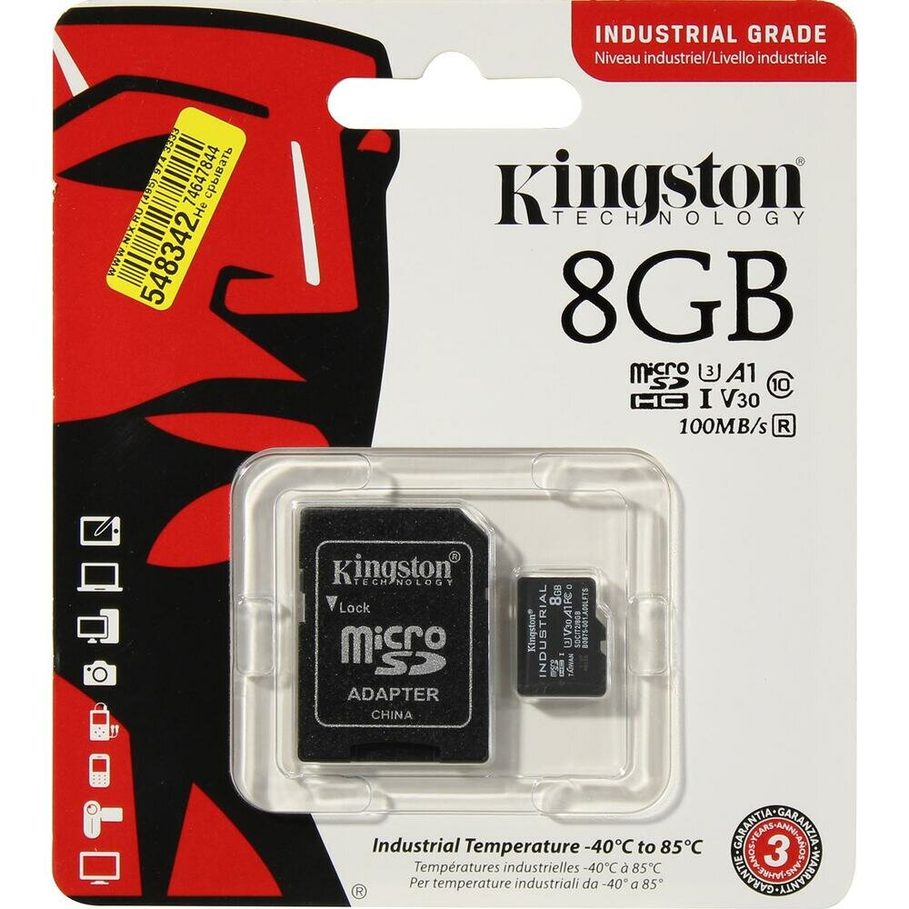 СохранитьKingston Карта памяти Micro SecureDigital 8Gb Class10 SDCIT2 8GB Industrial Temperature Class UHS-I с адаптером интересное: