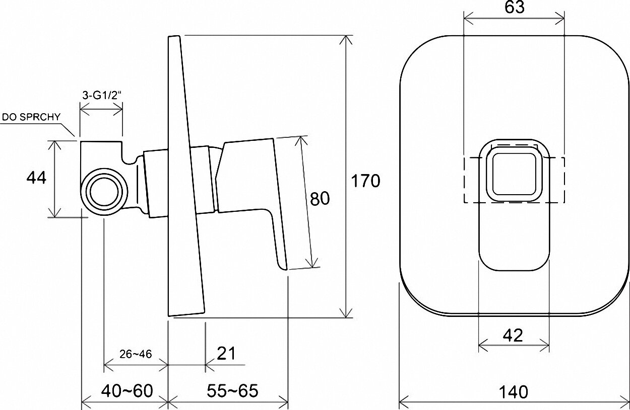 Смеситель для душа RAVAK 10° TD 062.00 встраиваемый, в комплекте со скрытой частью