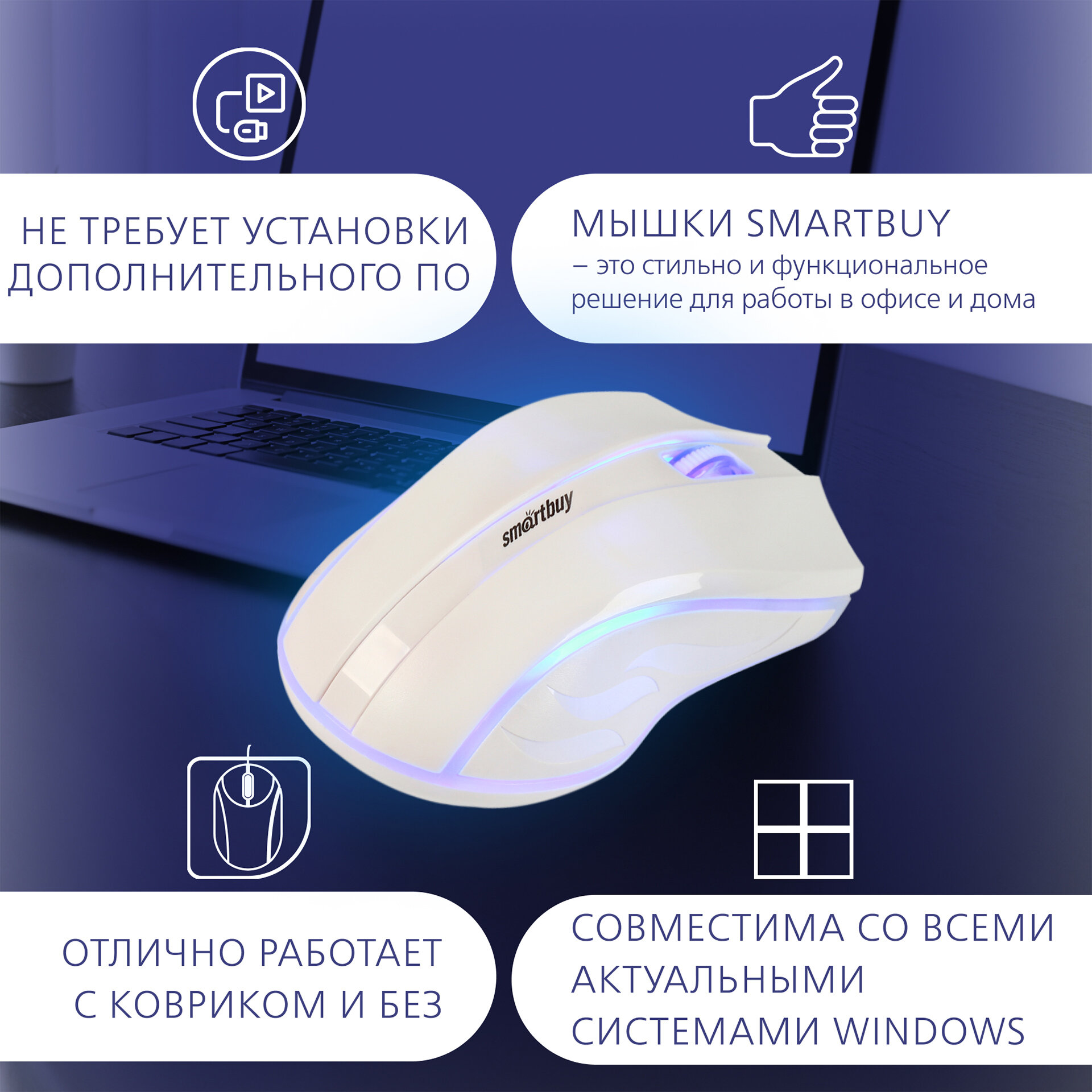 Мышь компьютерная SmartBuy ONE 338, USB, с подсветкой, белая, 2 кнопок (SBM-338-W)