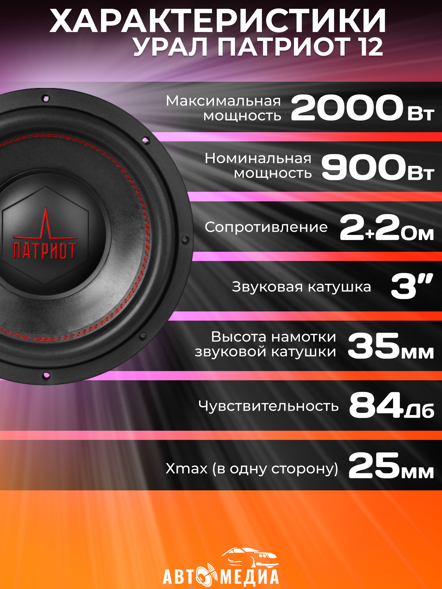 Сабвуфер автомобильный Ural Патриот 12 900Вт пассивный (30см/12") интересное: