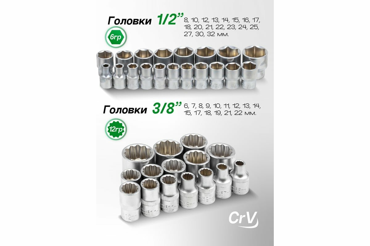 СохранитьRockforce Набор инструмента 1/2&1/4&3/8DR с 6-гранными головками, 142 предмета RF-41421-5(28514) интересное: