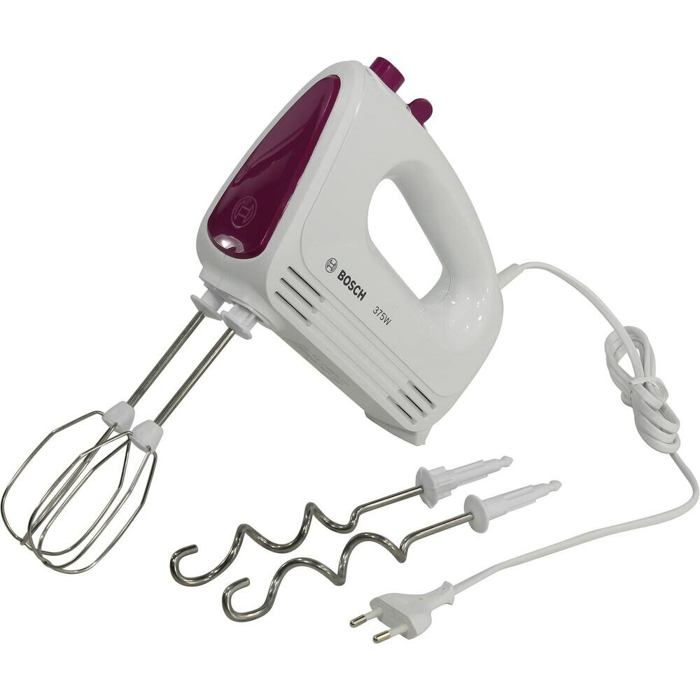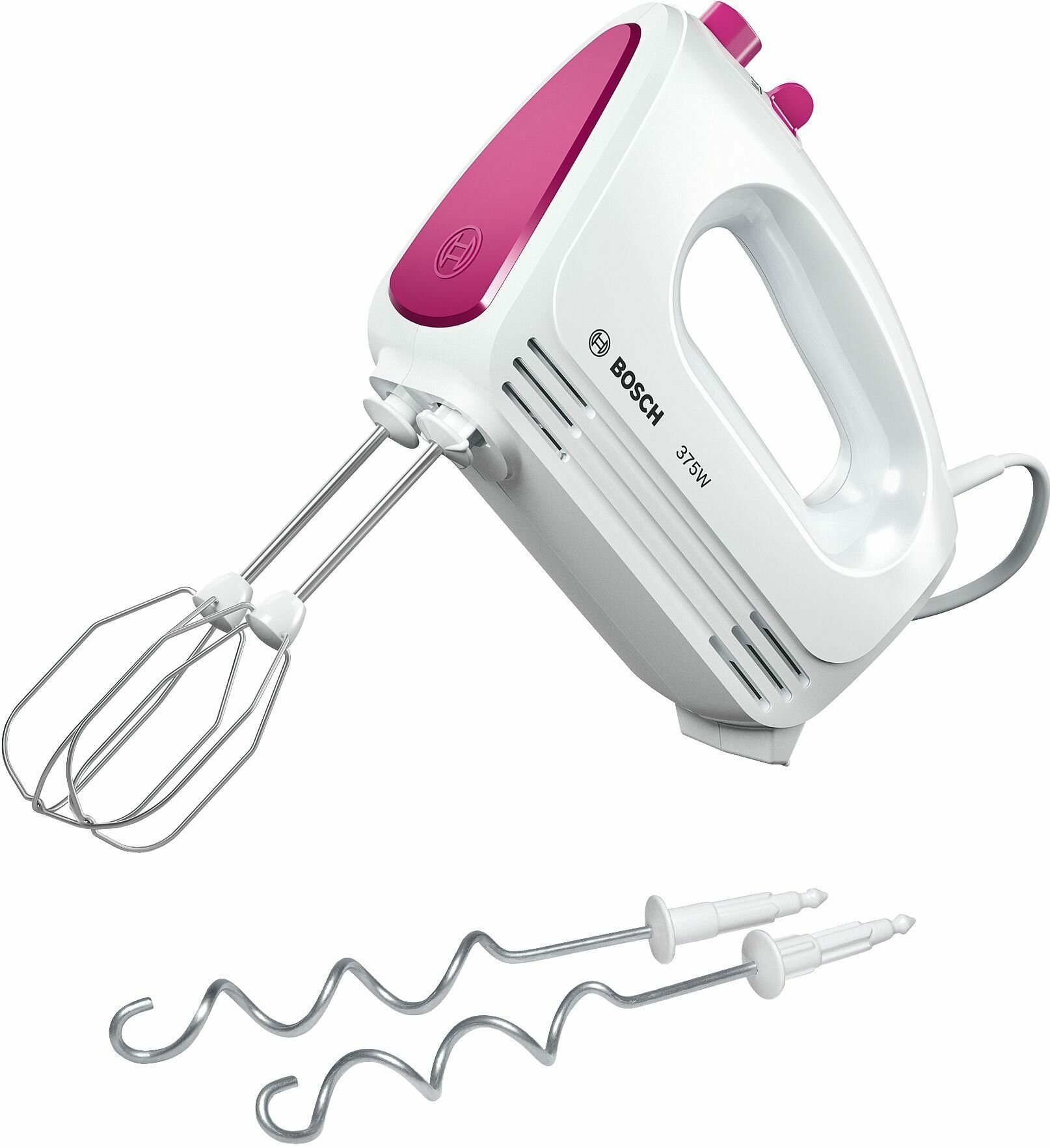 Купить Миксер BOSCH MFQ2210P, 375 Вт, цвет: белый/розовый, 4 скорости+ импульс.режим, 2 крюка+ 2 венчика