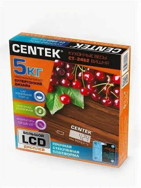 Весы Кухонные Centek Ct-2462 (Вишня) Стеклянные, Электронные, Max 5Кг, Шаг 1Г, Шелкография, Lcd CENTEK арт. CT2462CHERRY