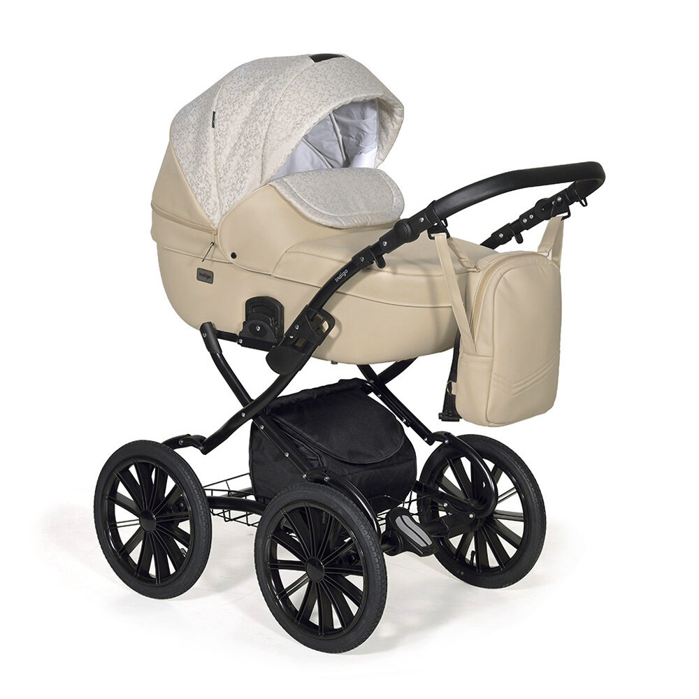 Коляска 2 В 1 Indigo Mio, Mi 02 Светло-Бежевая Кожа/Узор