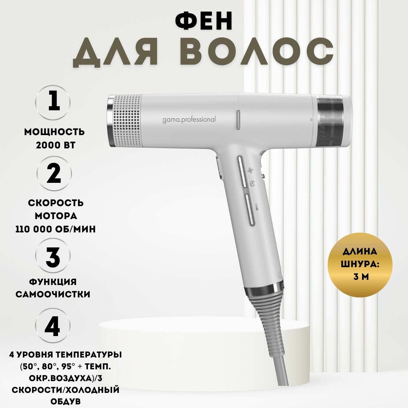 Электрофен Ga.ma Pluma 5500 Endurance Ion – It для волос, белый, 2400 Вт