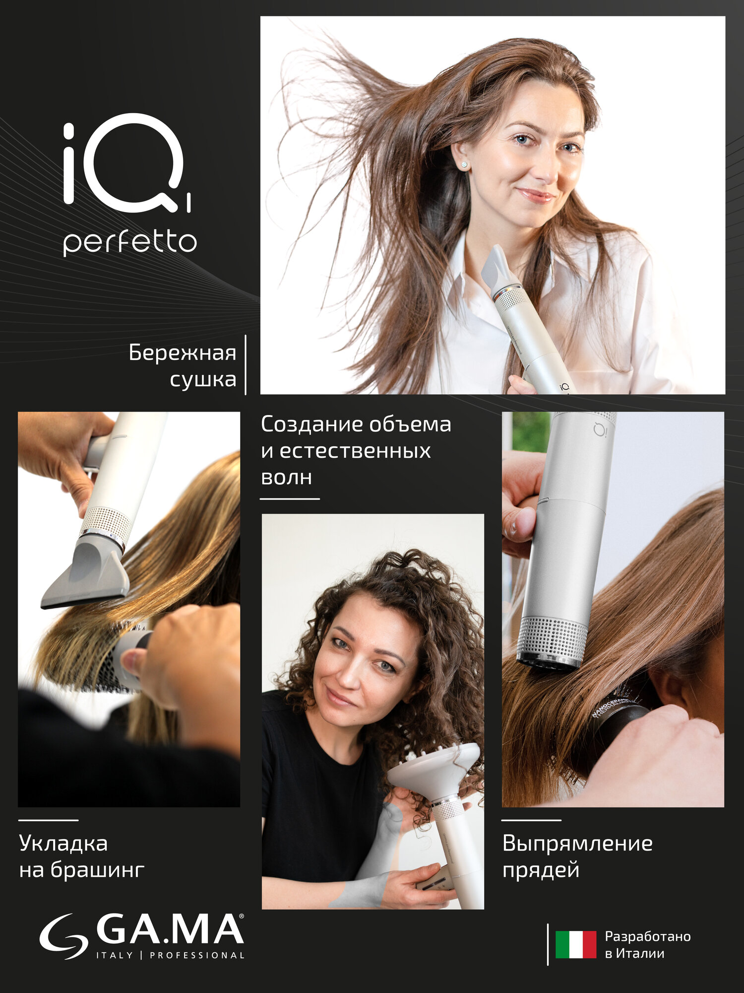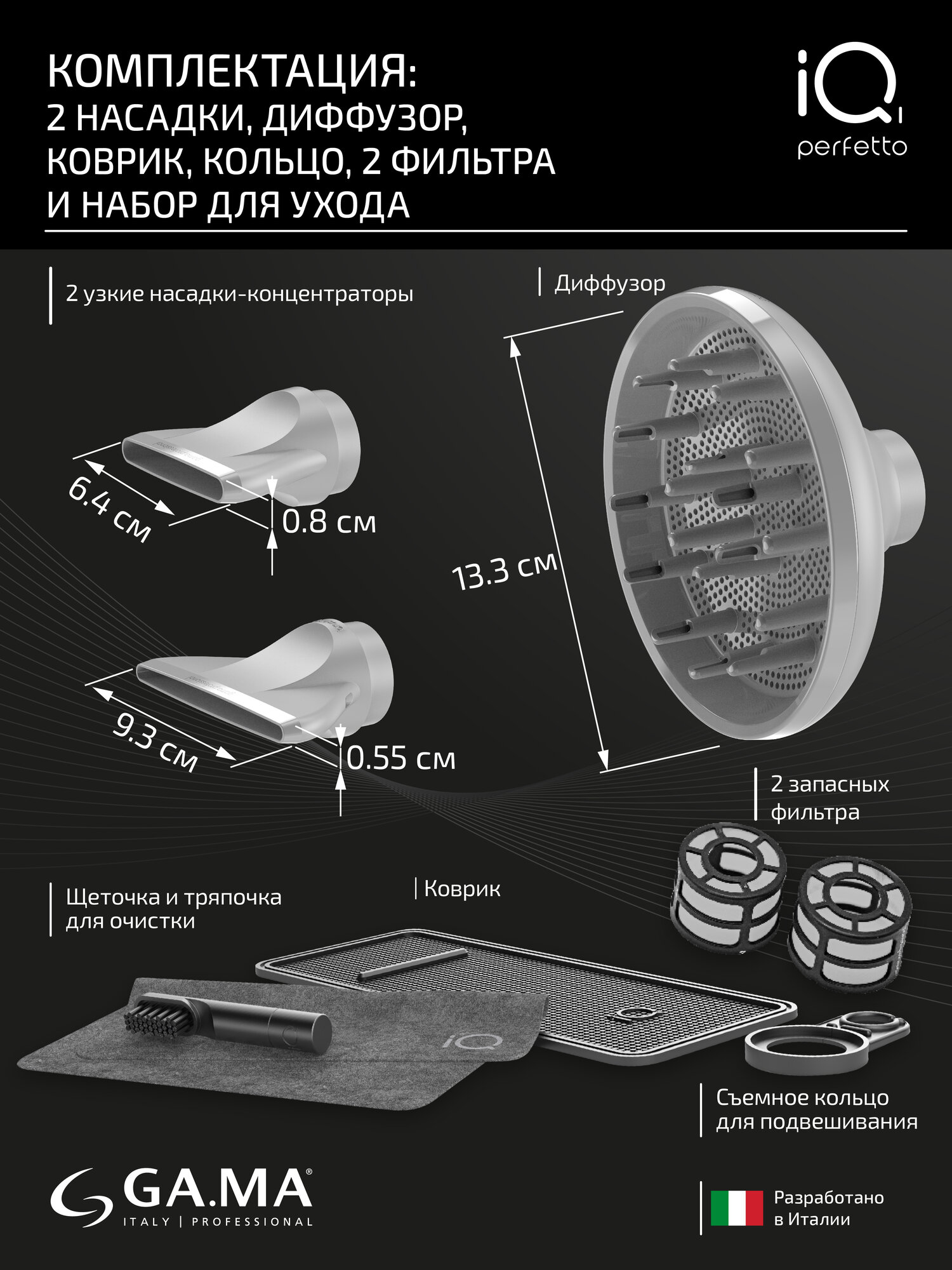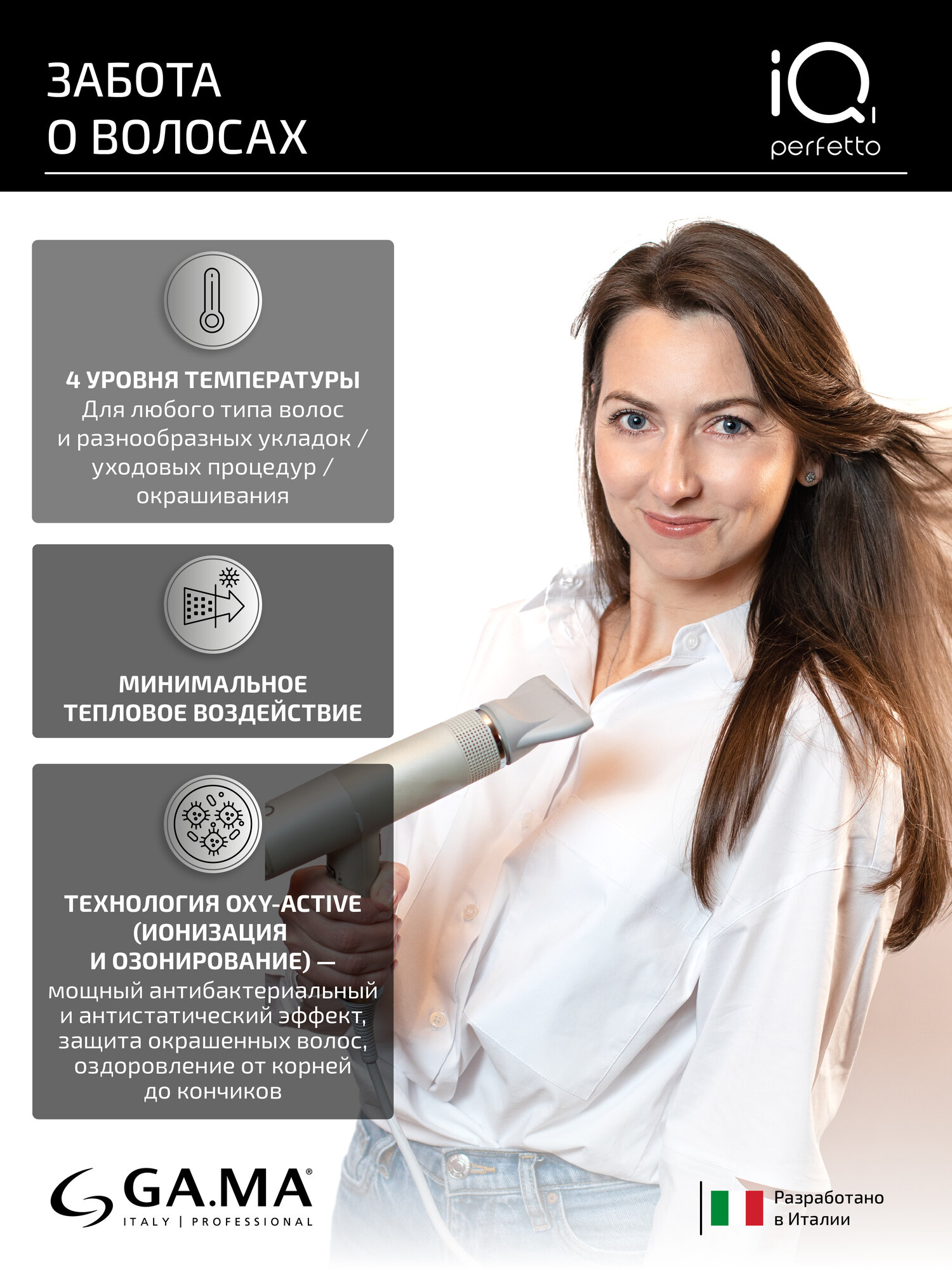 Электрофен для волос GA.MA IQ2 PERFETTO (черный)
