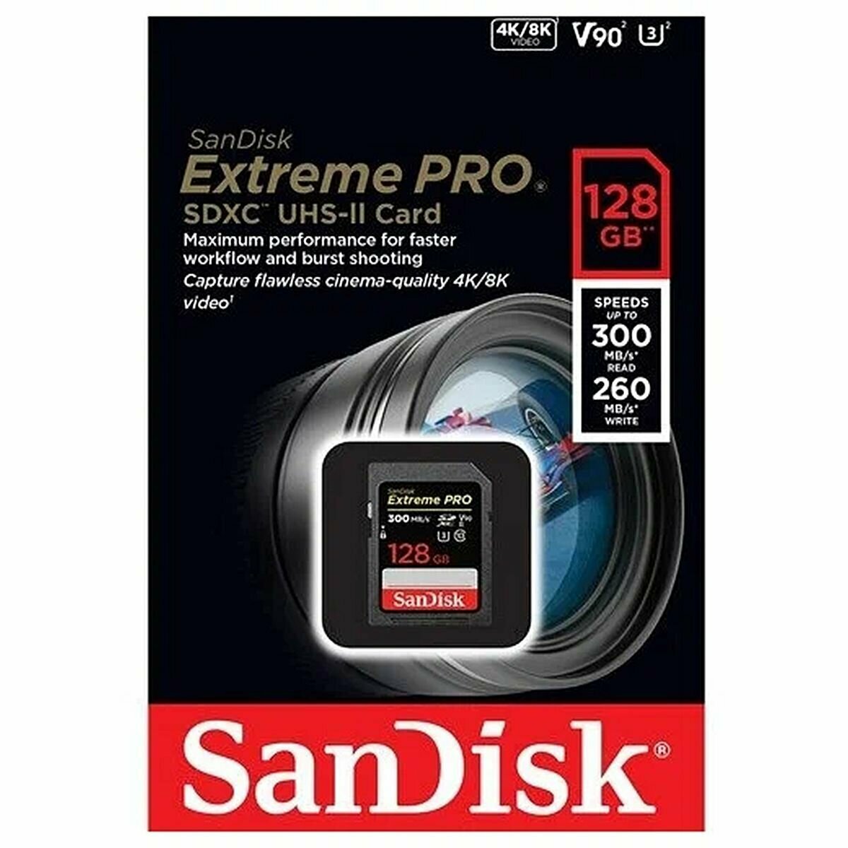Карта памяти SanDisk Extreme Pro SDXC 128GB UHS-II U3 V90, R/W 300/260 МБ/с