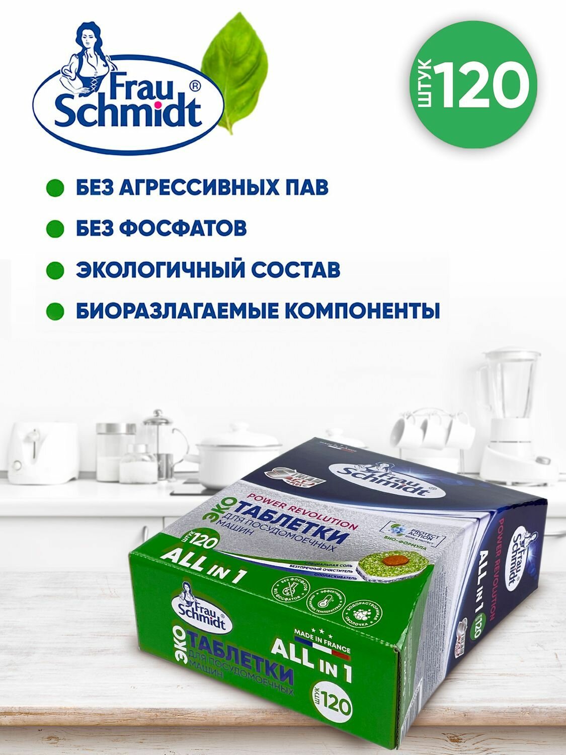 Купить Frau Schmidt Таблетки для посудомоечных машин "Все в 1"в водорастворимой оболочке 120 таб.
