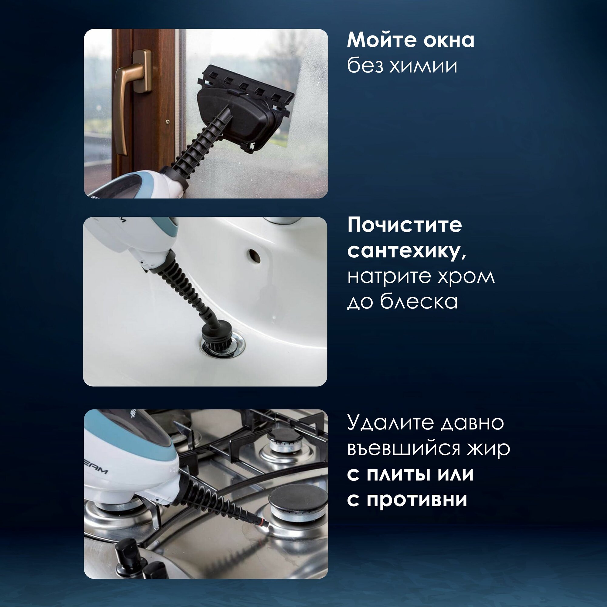 | Плюсы: | Качественно очищает паром без всяких средств, простота заправки бака воды и регулировки давления пара, компактная. |