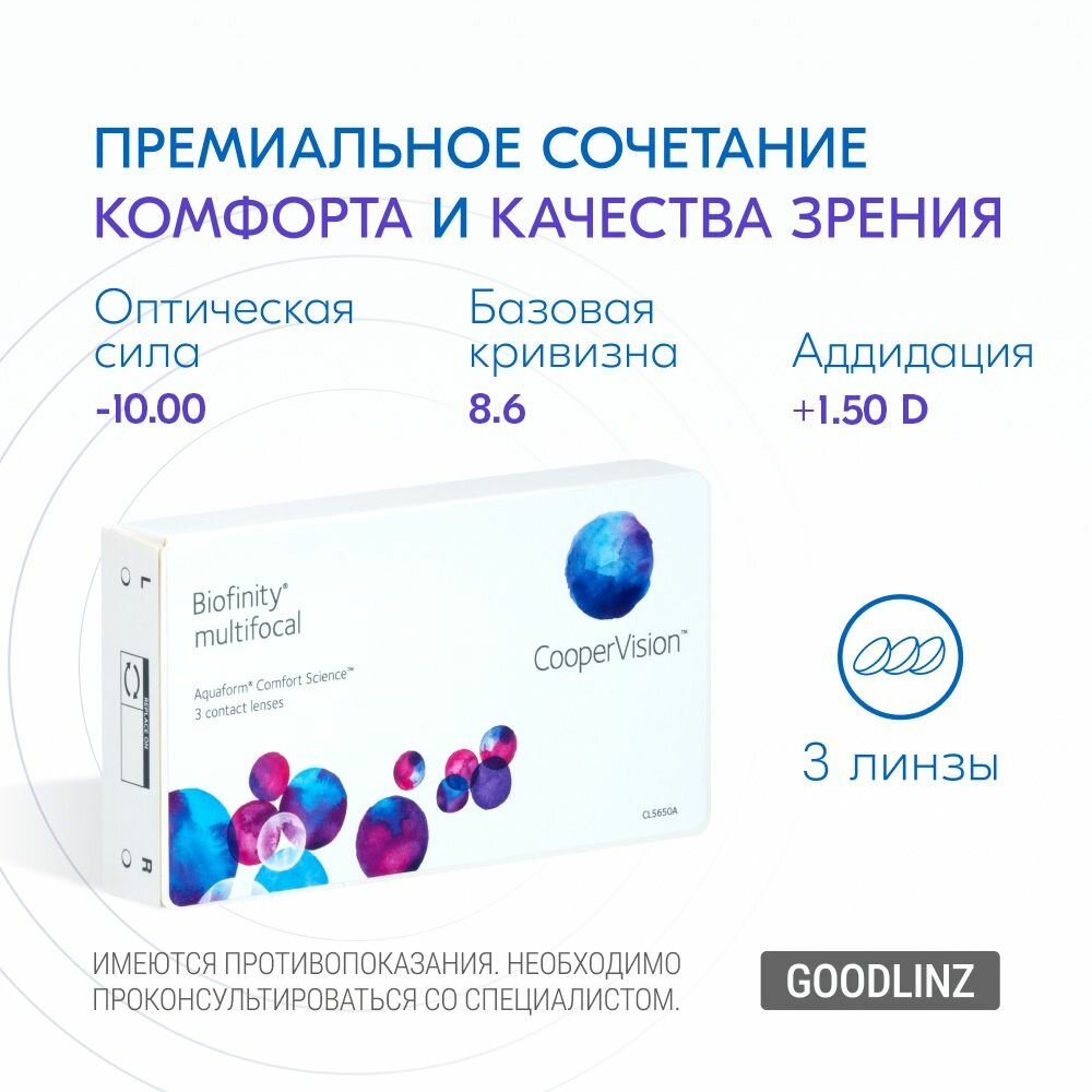 "Мультифокальные линзы CooperVision Biofinity multifocal (3 линзы) Аддидация +1.50D -10.00 R 8.6, ежемесячные, прозрачные"