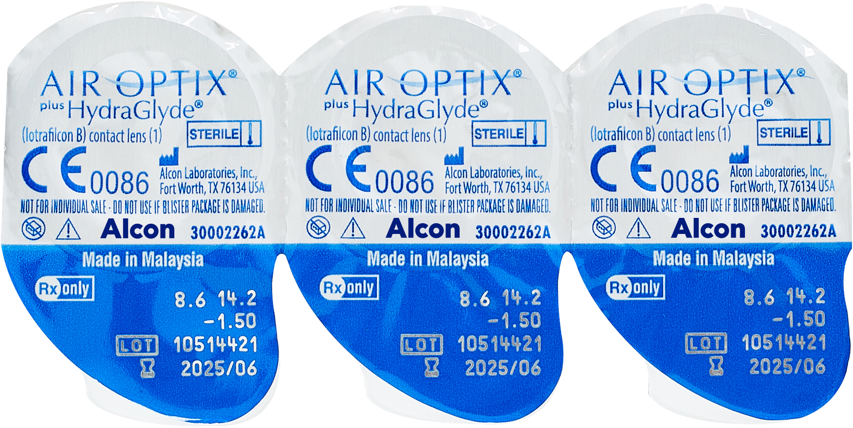 Контактные линзы Air Optix Plus HydraGlyde 3pk (BC 8,6; D -2.50)