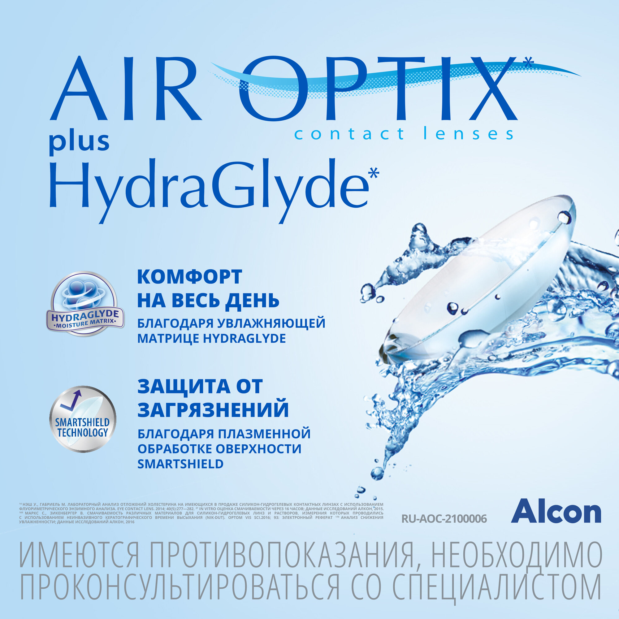 Контактные линзы Air Optix (Alcon) Plus HydraGlyde, 3 шт., R 8,6, D -9,5