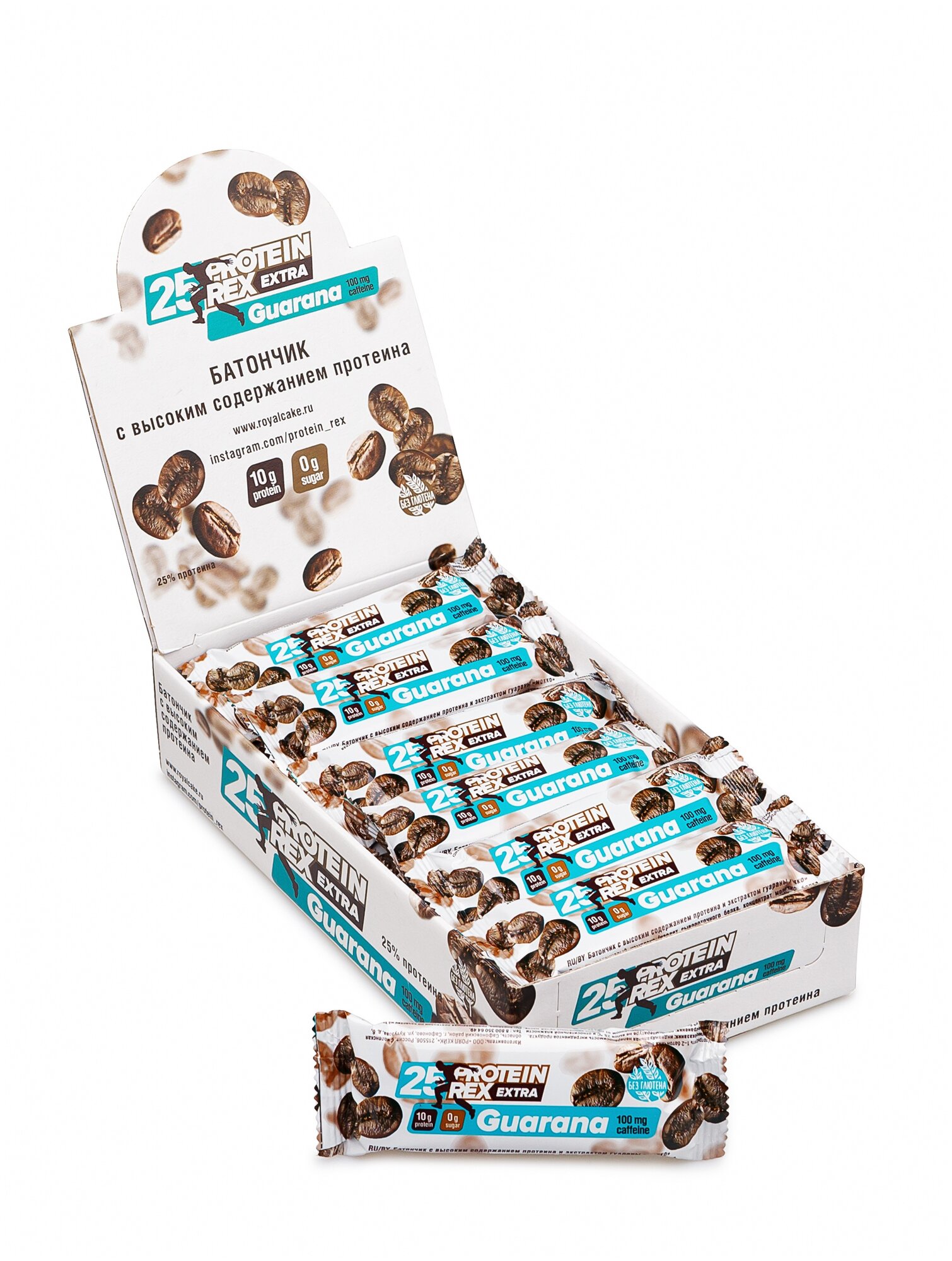 Протеиновые батончики без сахара ProteinRex EXTRA (Экстра) с экстрактом гуараны (мокко), ПП еда, спортивные батончики 18 шт х 40 г, 120 ккал