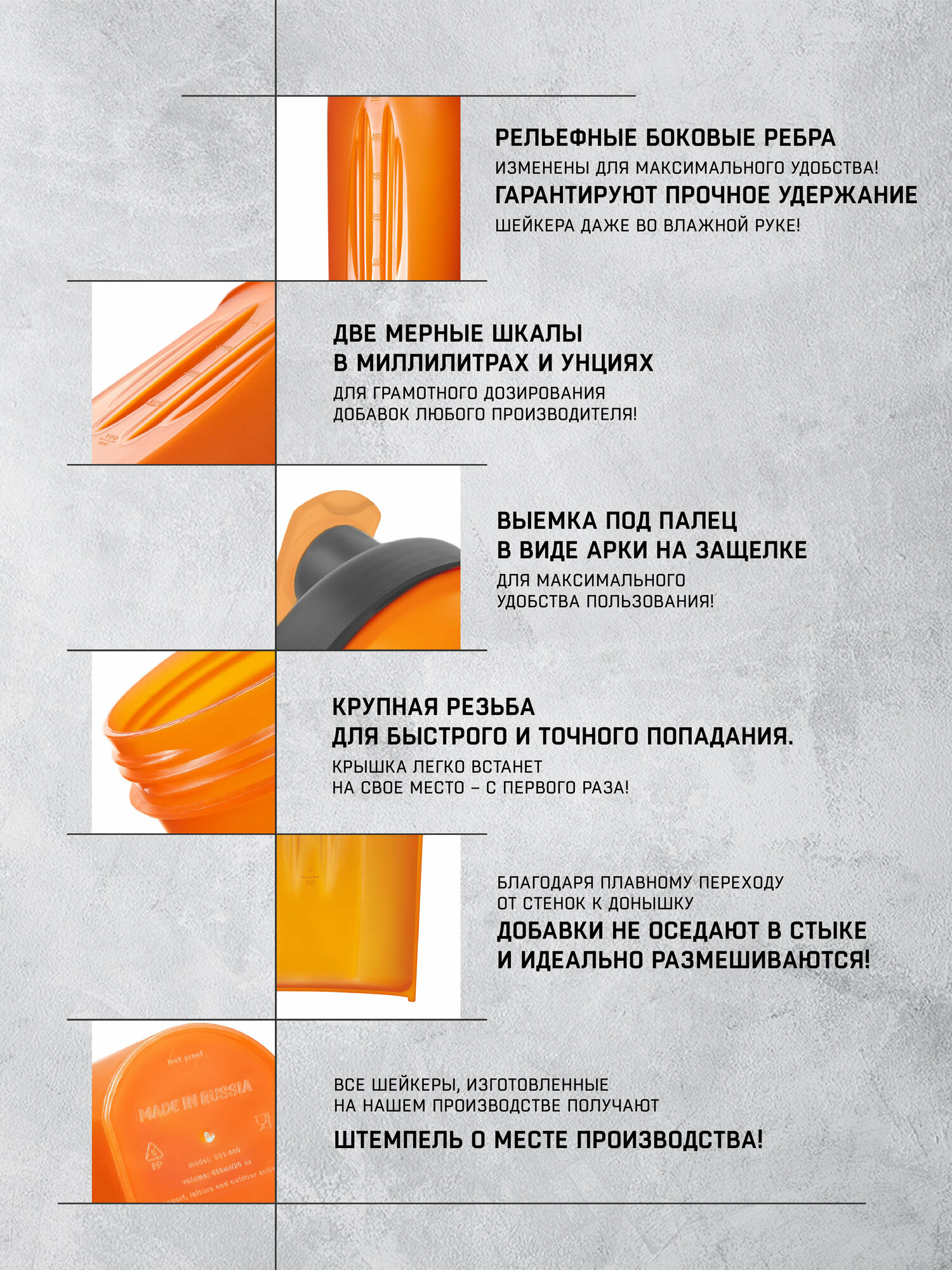 СохранитьШейкер для спортивного питания оранжевый Sports element "Агат оранжевый" 600 мл с шариком (венчиком) интересное: