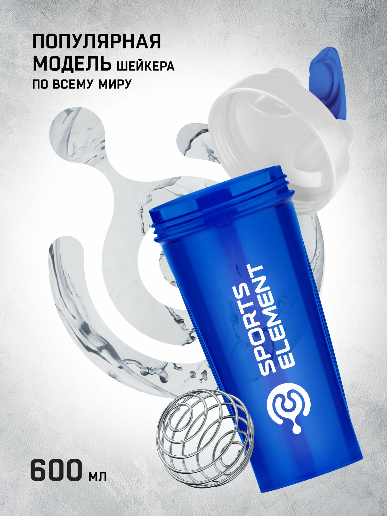 Шейкер для спортивного питания синий Sports element "Тиффани" 600 мл с шариком (венчиком)