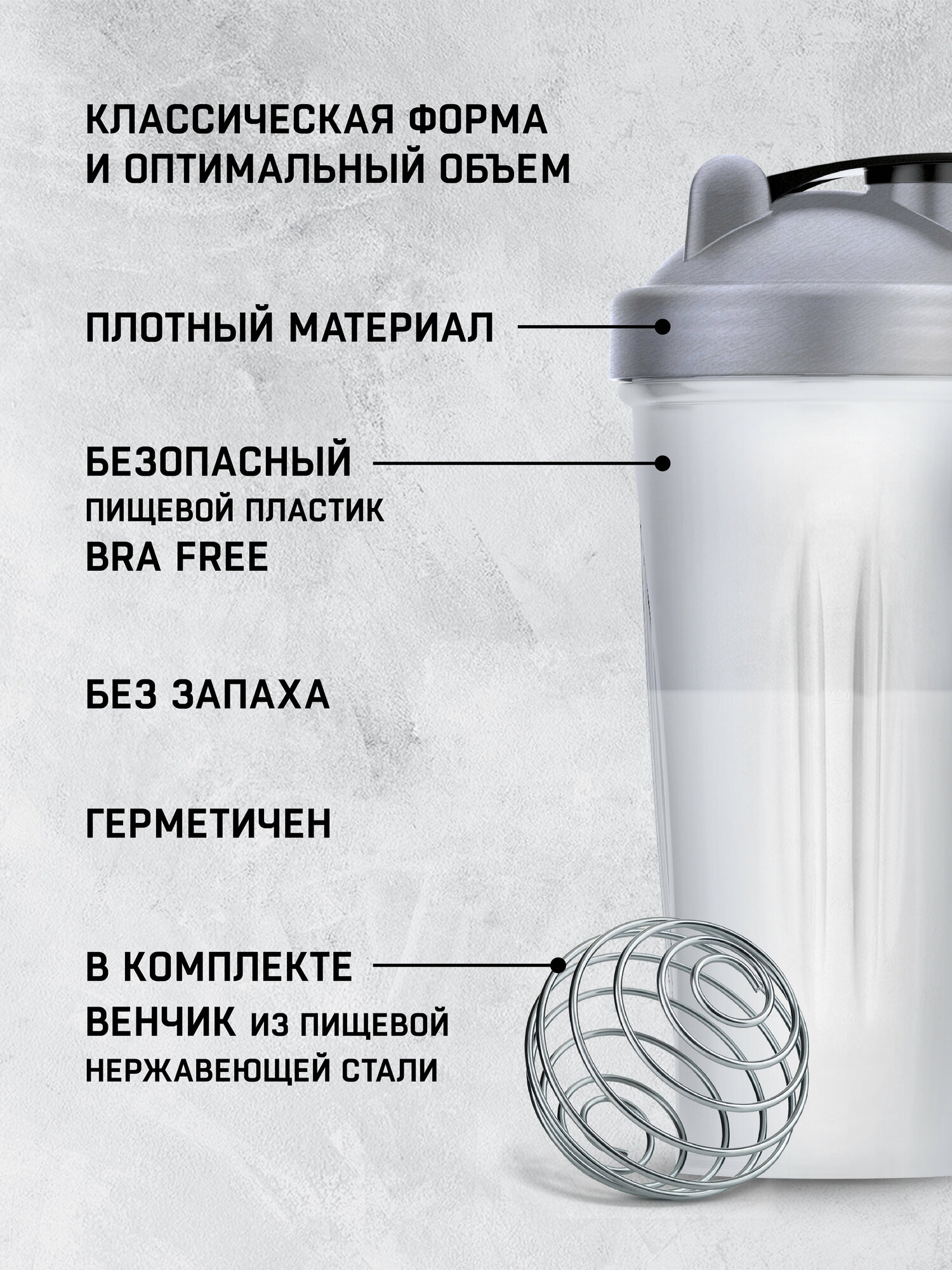 Шейкер для спортивного питания Sports Element "Хрусталь белый" 600 мл с шариком (венчиком)