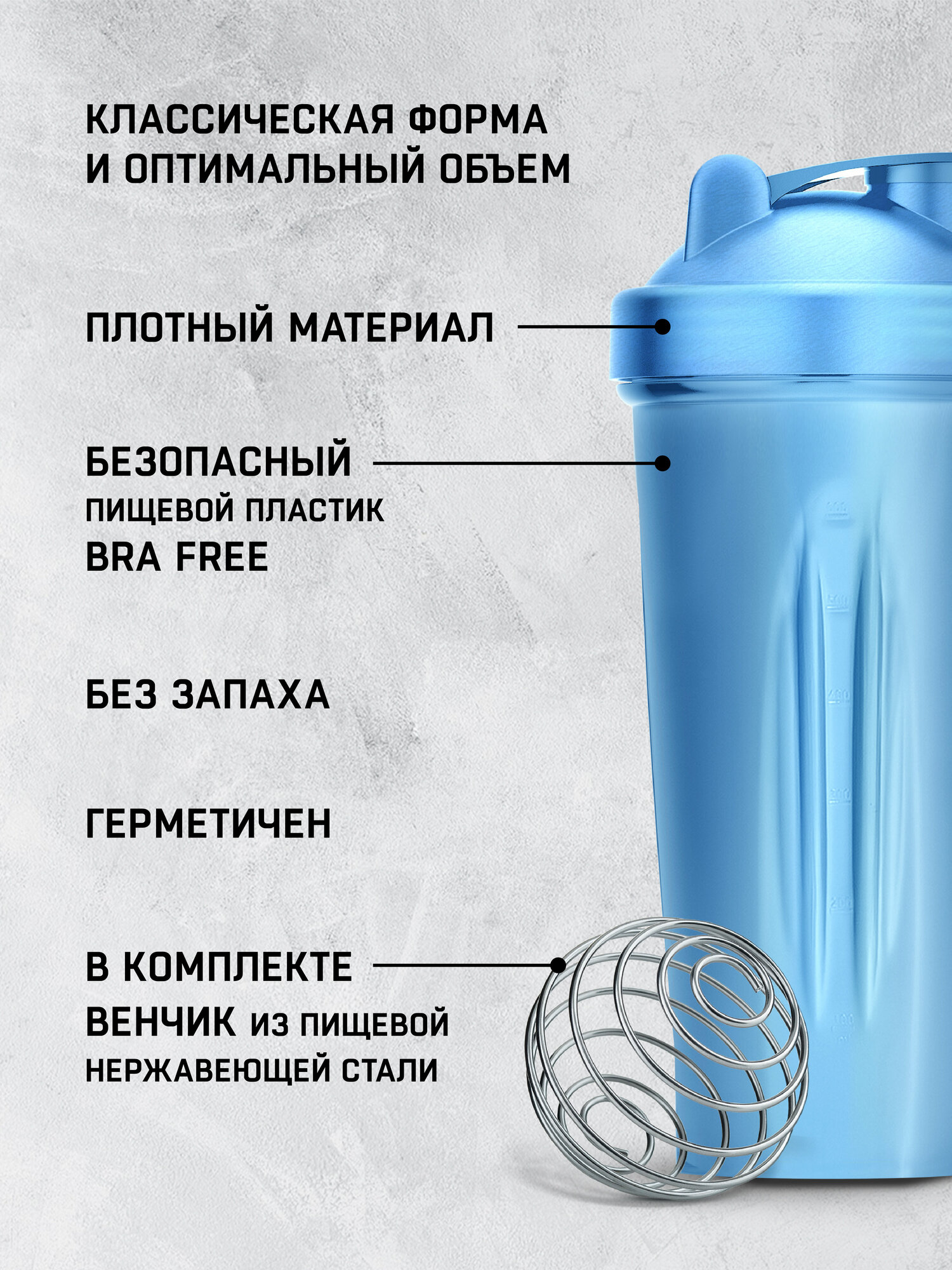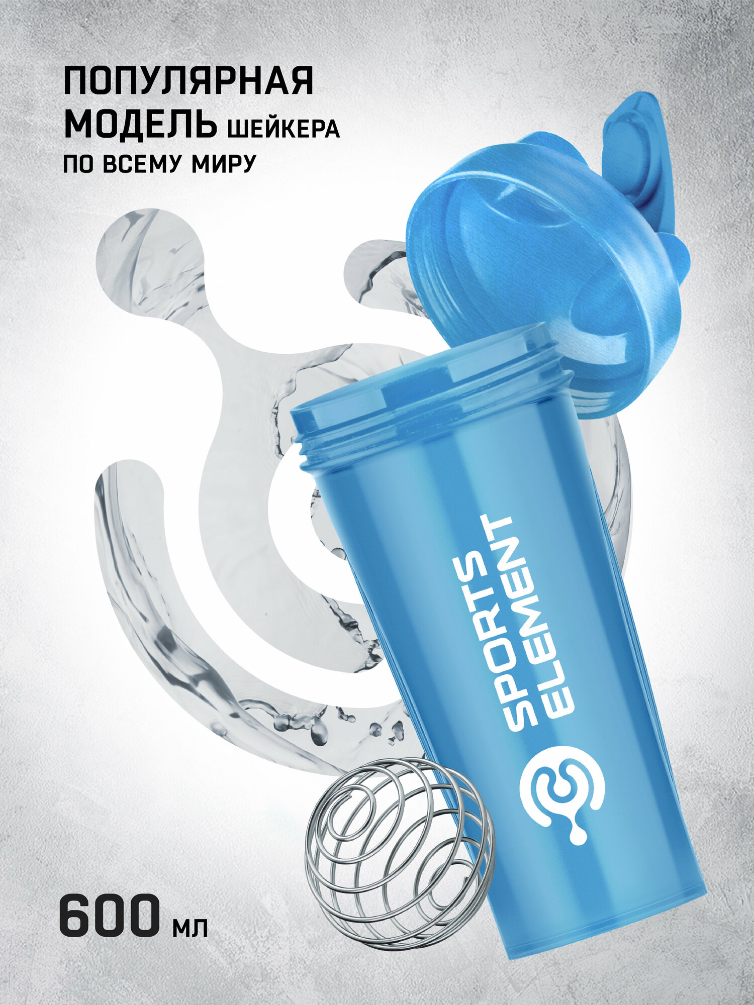 Купить Шейкер для спортивного питания синий Sports element "Тиффани" 600 мл с шариком (венчиком)