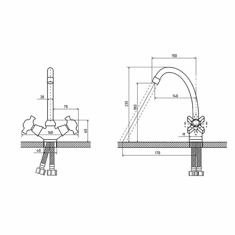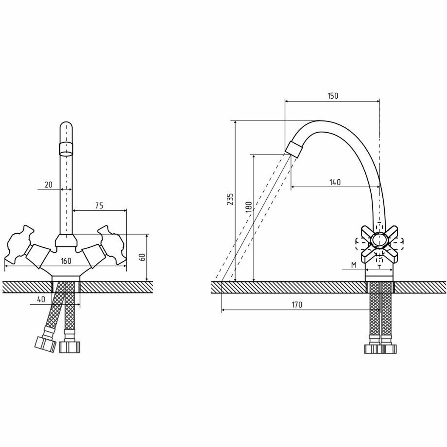 Смеситель для кухни Osgard Roxen 71076, двухвентильный Osgard 2932353 .
