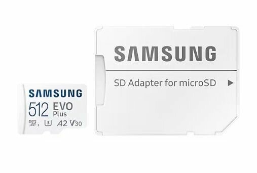 Карта памяти Samsung EVO Plus microSDHC 512 ГБ A2, UHS Class 1 запись - 130 Мбайт/сек
