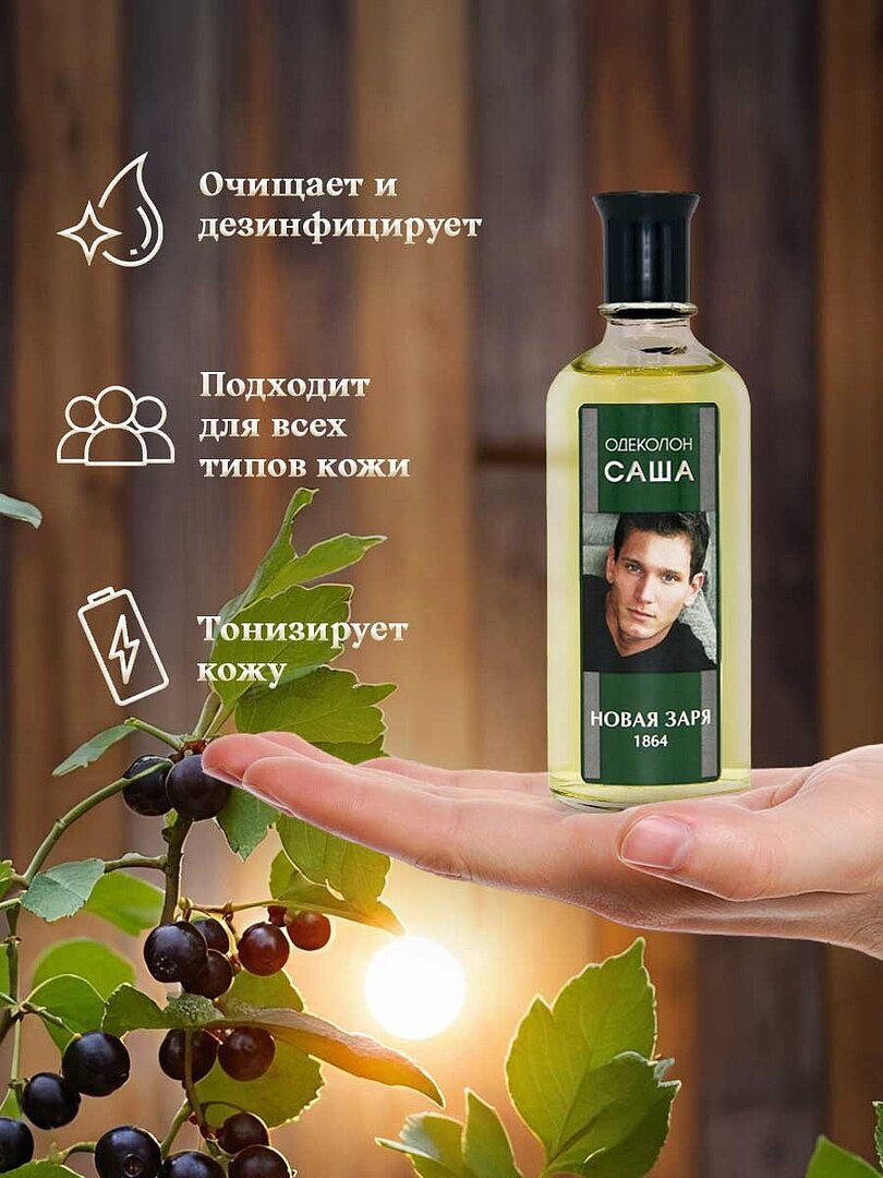 Новая Заря Одеколон для мужчин Саша свежий, древесный, стекло винт 100 мл