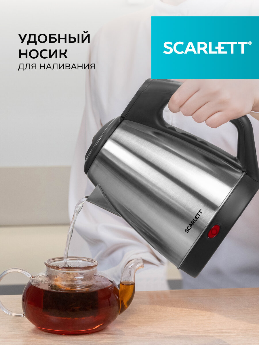 Чайник SCARLETT SC-EK21S25, закрытый нагревательный элемент, объем 1.5 л, мощность 1350 Вт, сталь