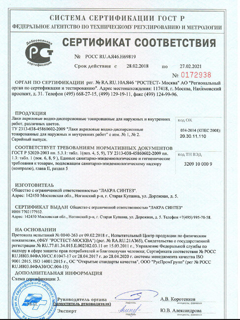 Лакра Лак в/д тонированный Бесцветный 2,5кг 90001353173