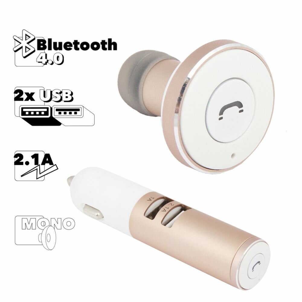 Купить Bluetooth беспроводная гарнитура Remax RB-T11C со встроенной АЗУ с двумя выходами USB, 2.4А, золотой