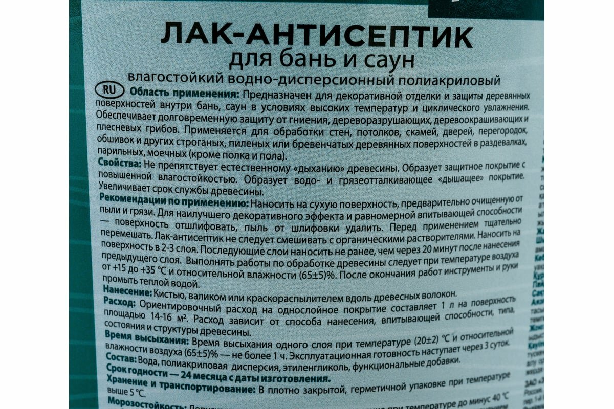 Влагостойкий водно-дисперсионный полиакриловый лак-антисептик для бань и саун Profiwood 6494