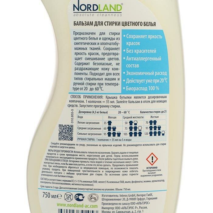 Бальзам для стирки NORDLAND, для цветного белья, 750 мл