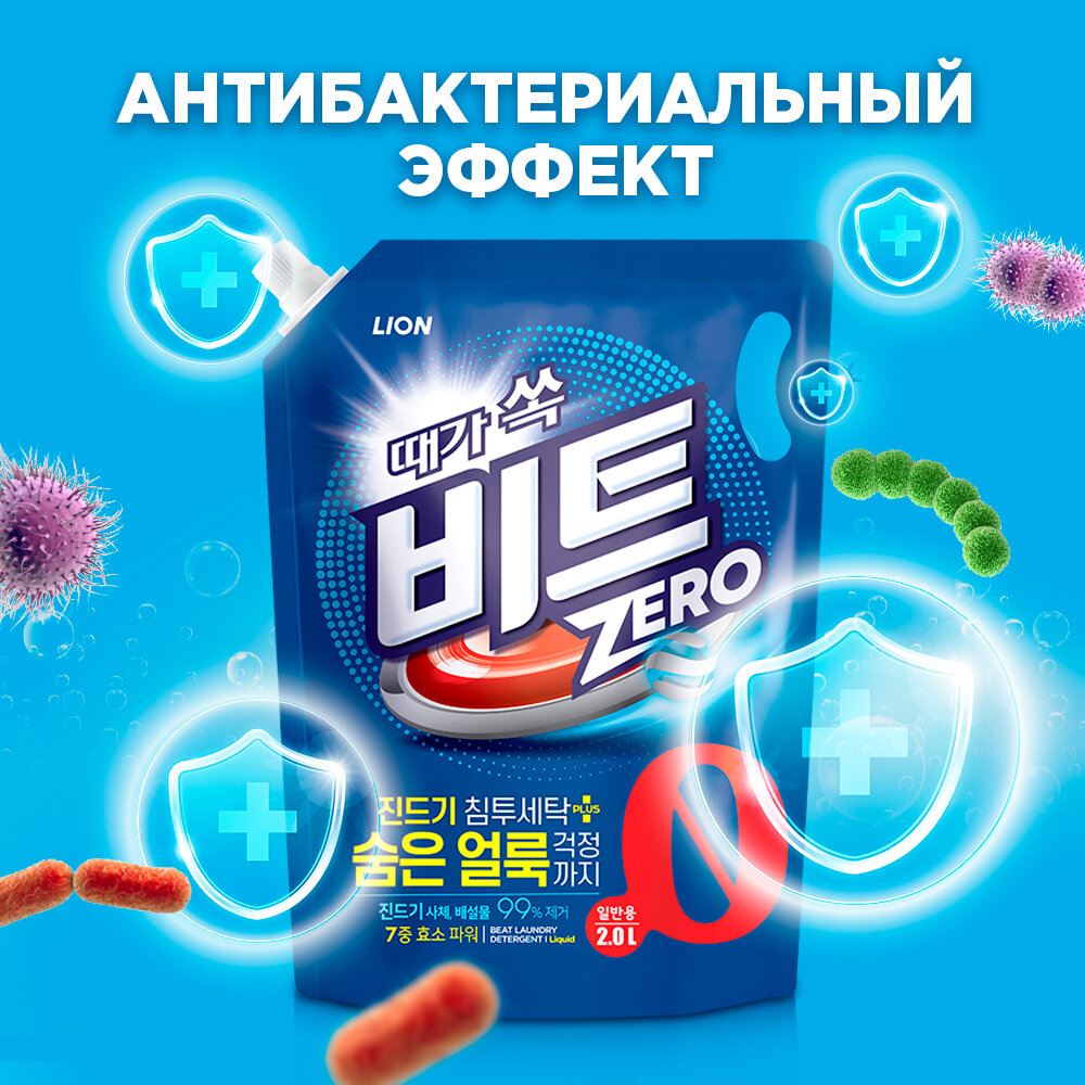 CJ Lion Жидкое средство "Beat" для ручной и автоматической стирки, мягкая упаковка, 2000 мл