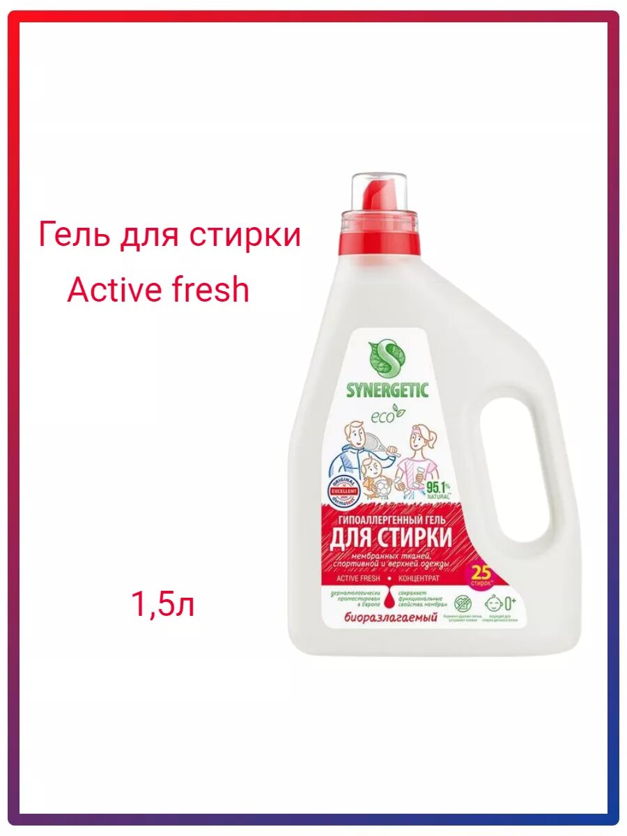 Купить Гель для стирки Synergetic Active Fresh, биоразлагаемый, концентрированный, 1.5 л