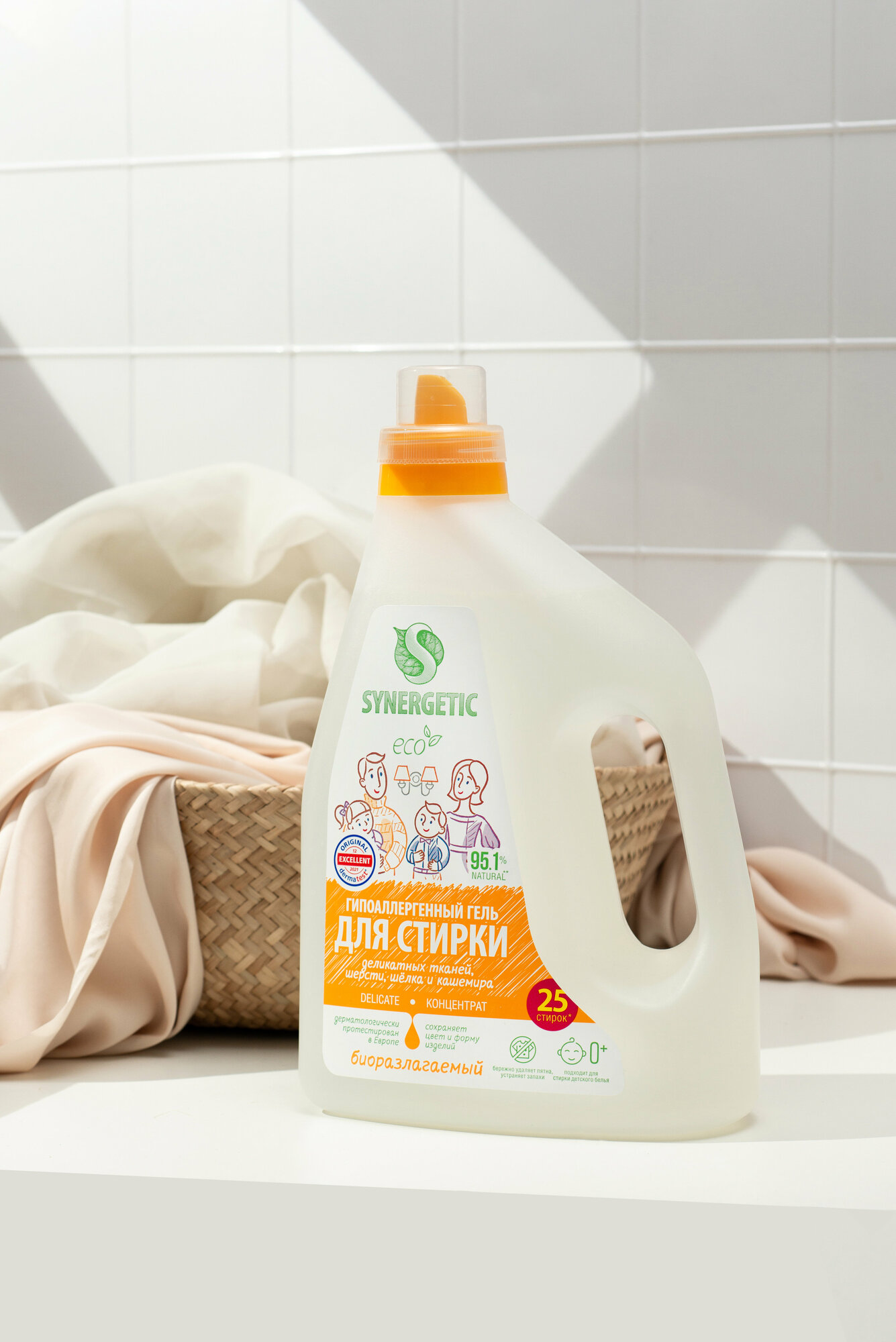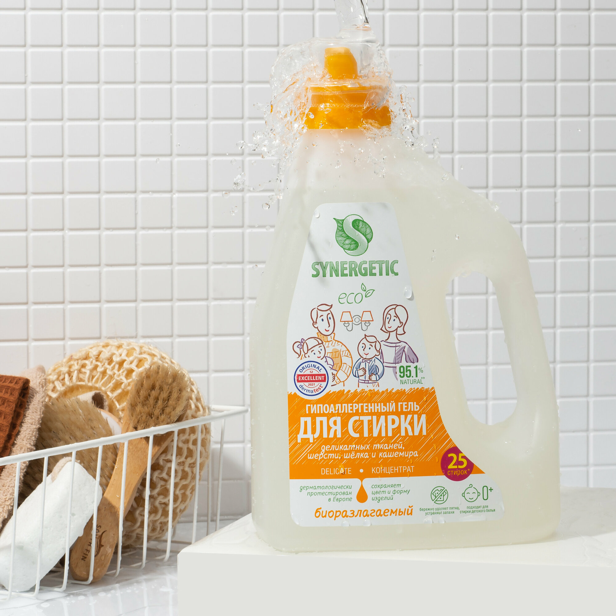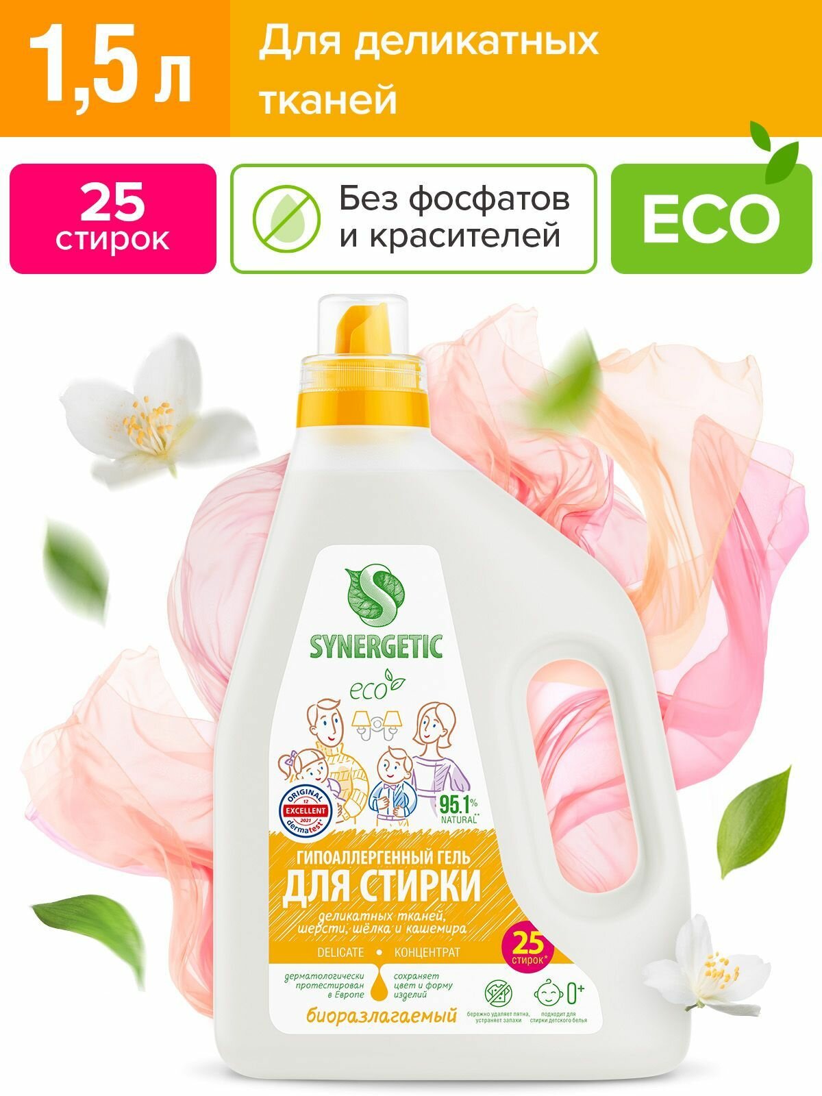Биоразлагаемый концентрированный гель для стирки SYNERGETIC DELICATE, 1,5 л (25 стирок)