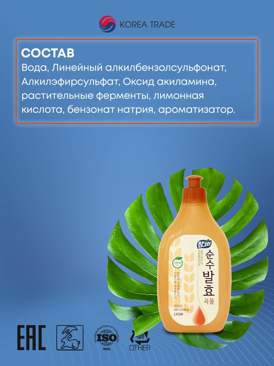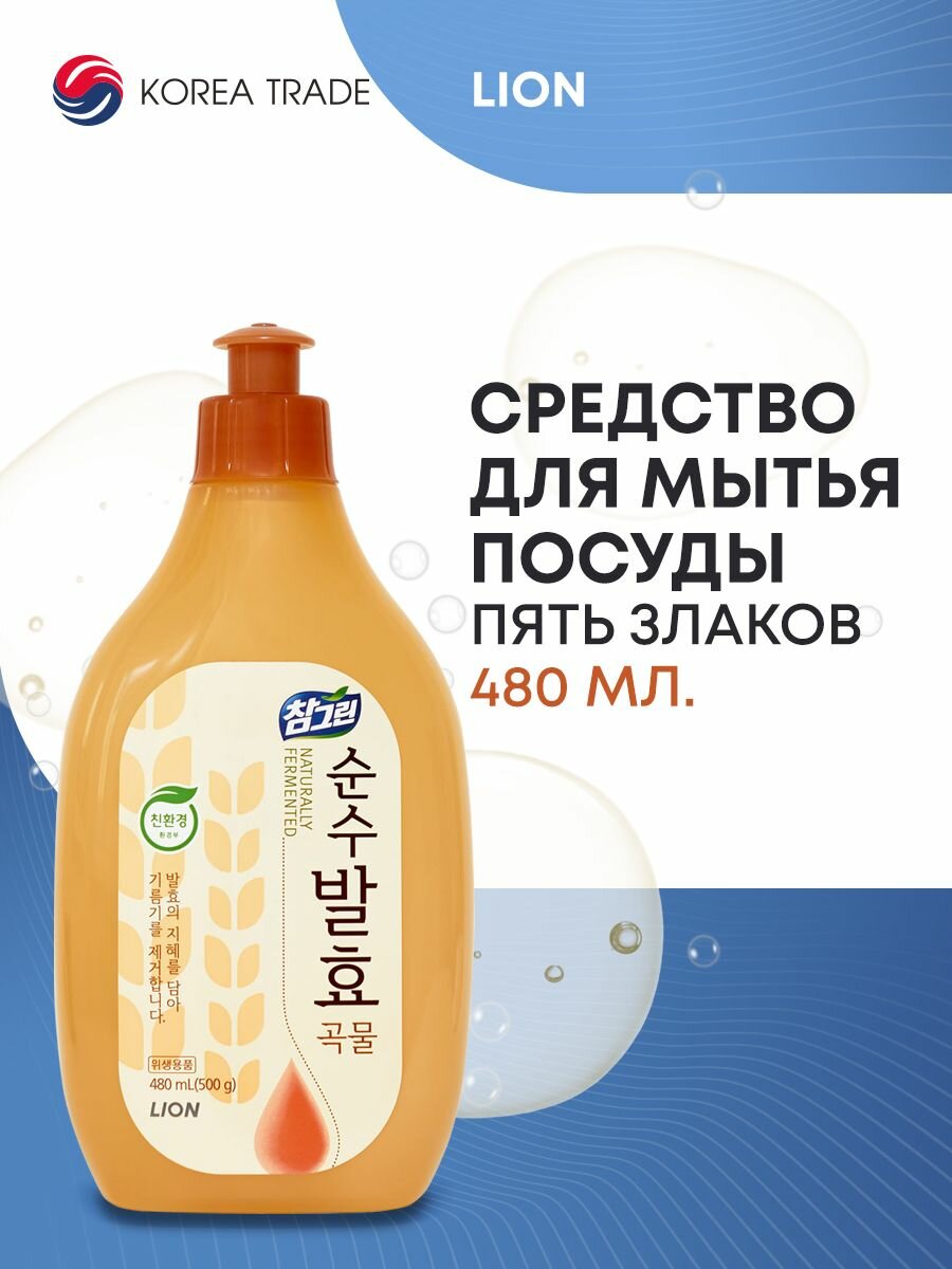 Средство для мытья посуды, овощей и фруктов 5 злаков LION Chamgreen Pure Fermentation, 480 мл