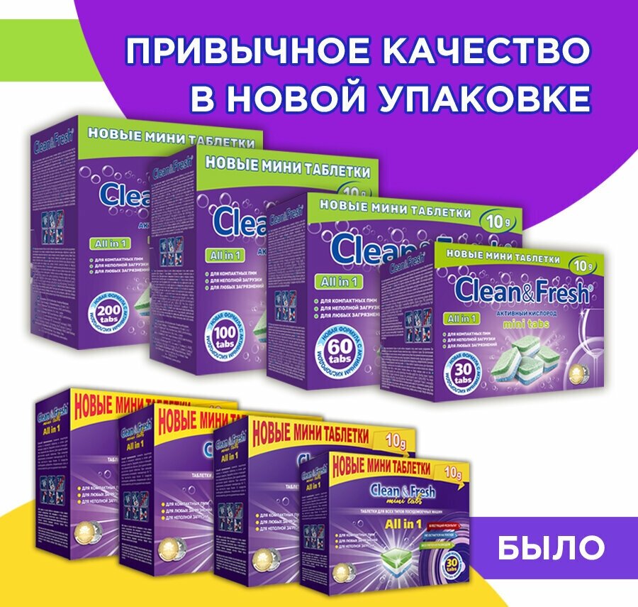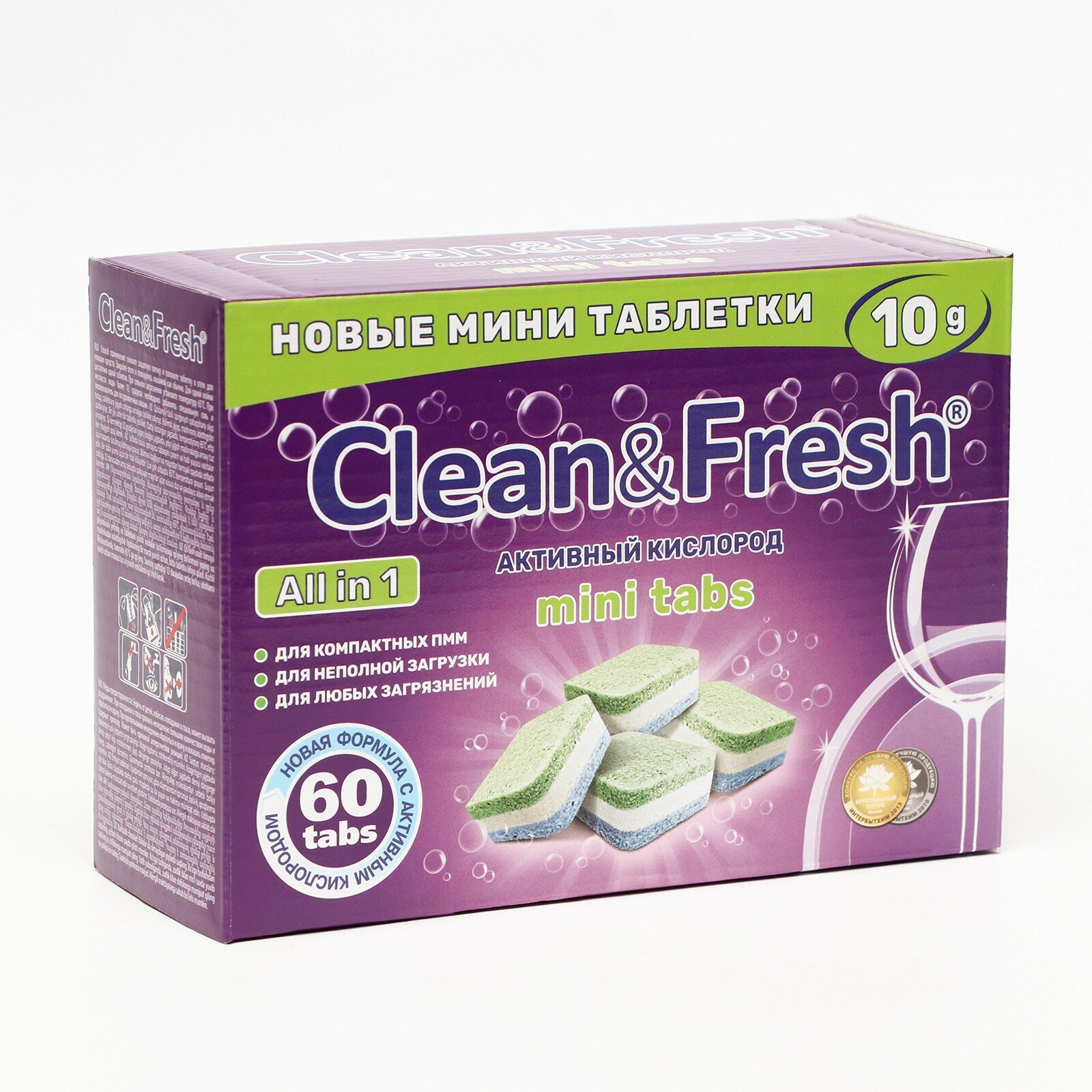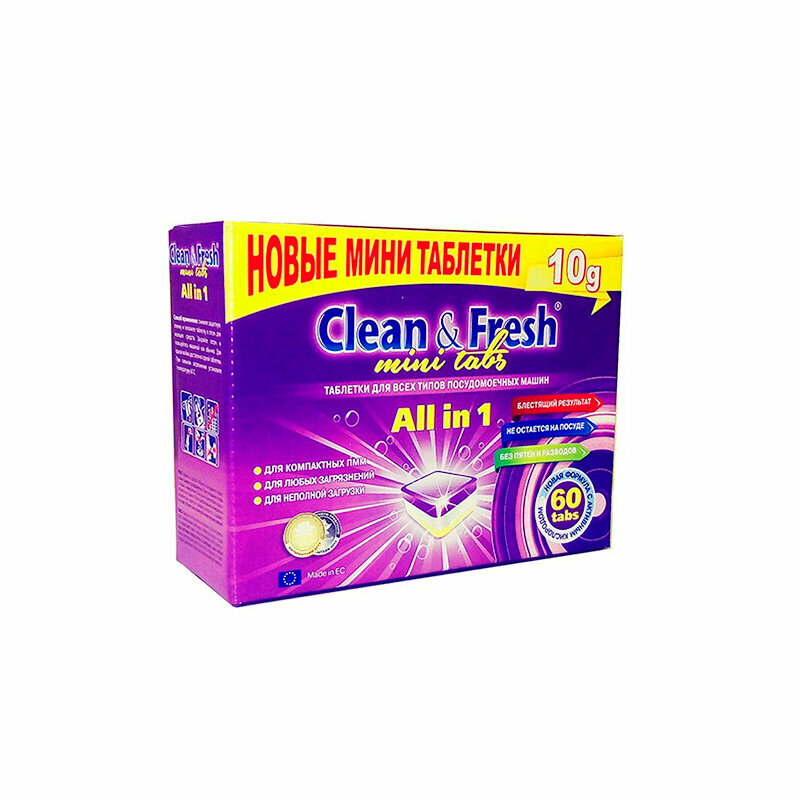 Мини-таблетки для посудомоечных машин Clean & Fresh CLEAN&FRESH All in 1, 60 шт*10 г