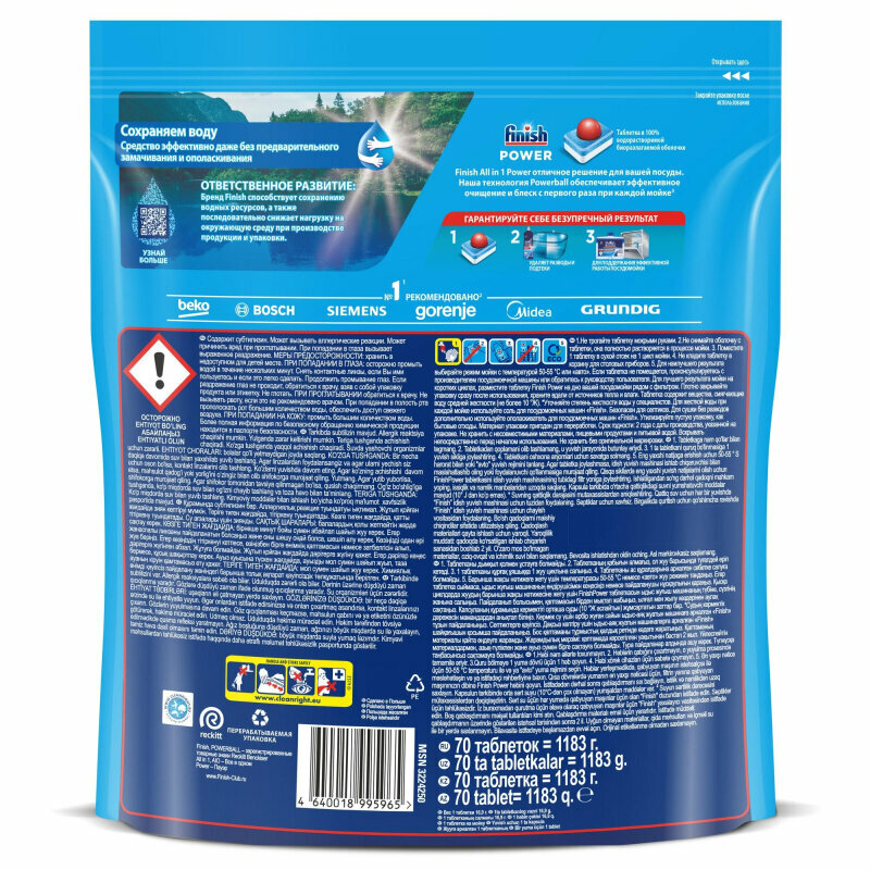 | Отзыв: | После множества экспериментов вернулся к использованию Finish. Однозначно лучшие на рынке |