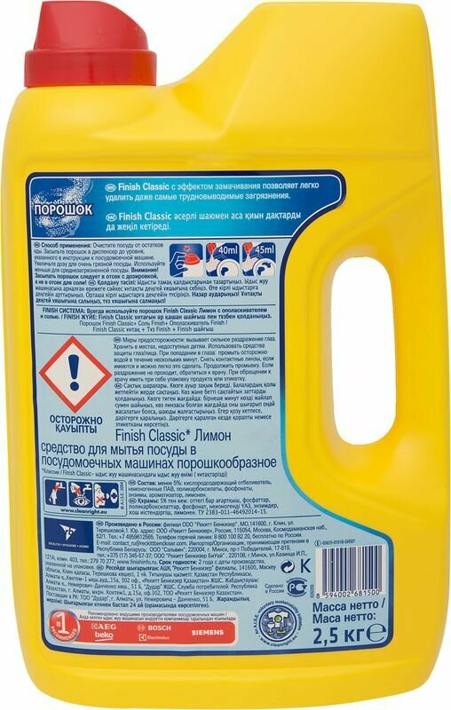 СохранитьФиниш Классик Лимон / Finish Classic Power Powder Lime - Порошок для посудомоечных машин, 2,5 кг интересное:
