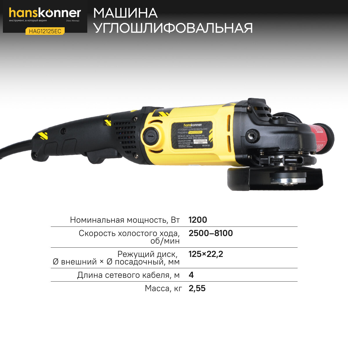 УШМ Hanskonner HAG12125EC, 125 мм, 1200 Вт