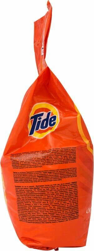 | Отзыв: | Сам порошок находится в полиэтиленовой упаковке с отверстиями для палец. Дизайн в оранжевом окраске с передней стороне логотипом Tide, а вот позади и по бокам вся информация. Порошок предназначен для стирки автомат.