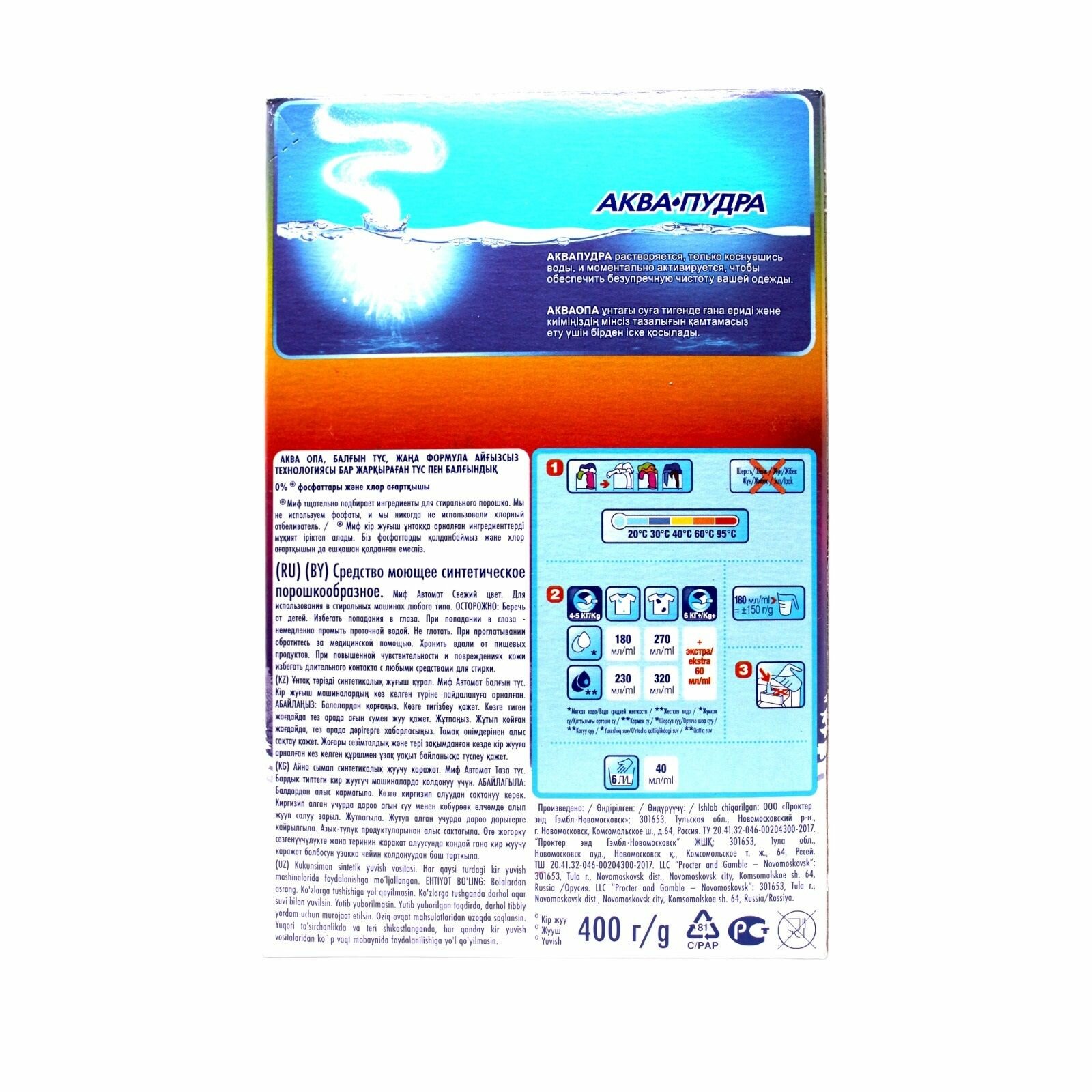 Стиральный порошок Миф Аквапудра Свежий цвет, автомат, 0.4 кг