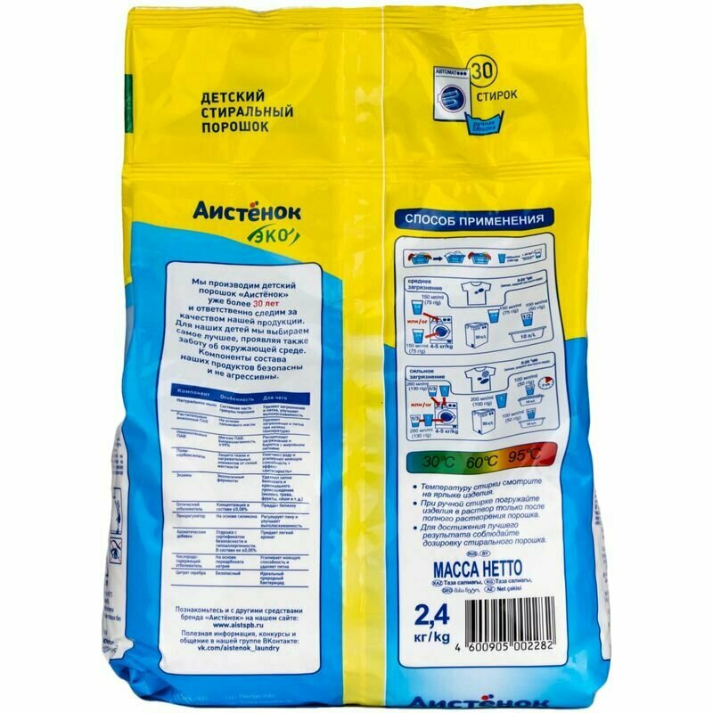 Стиральный порошок автомат Аистёнок 2.4кг, Детский 0+, эко, гипоалергенный, 30 стирок, бесфосфатный