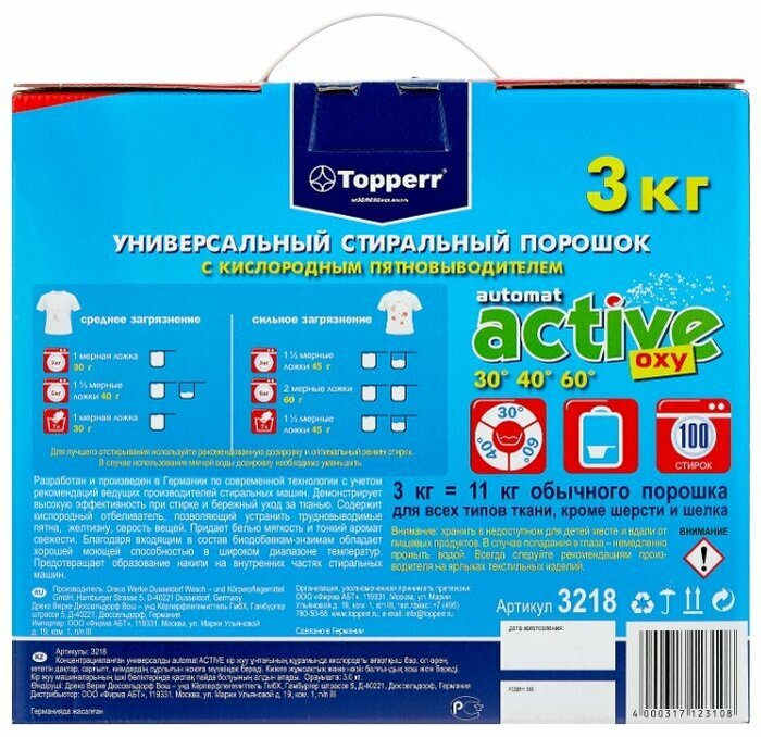 Стиральный порошок Topperr Active Oxy (автомат), 3 кг